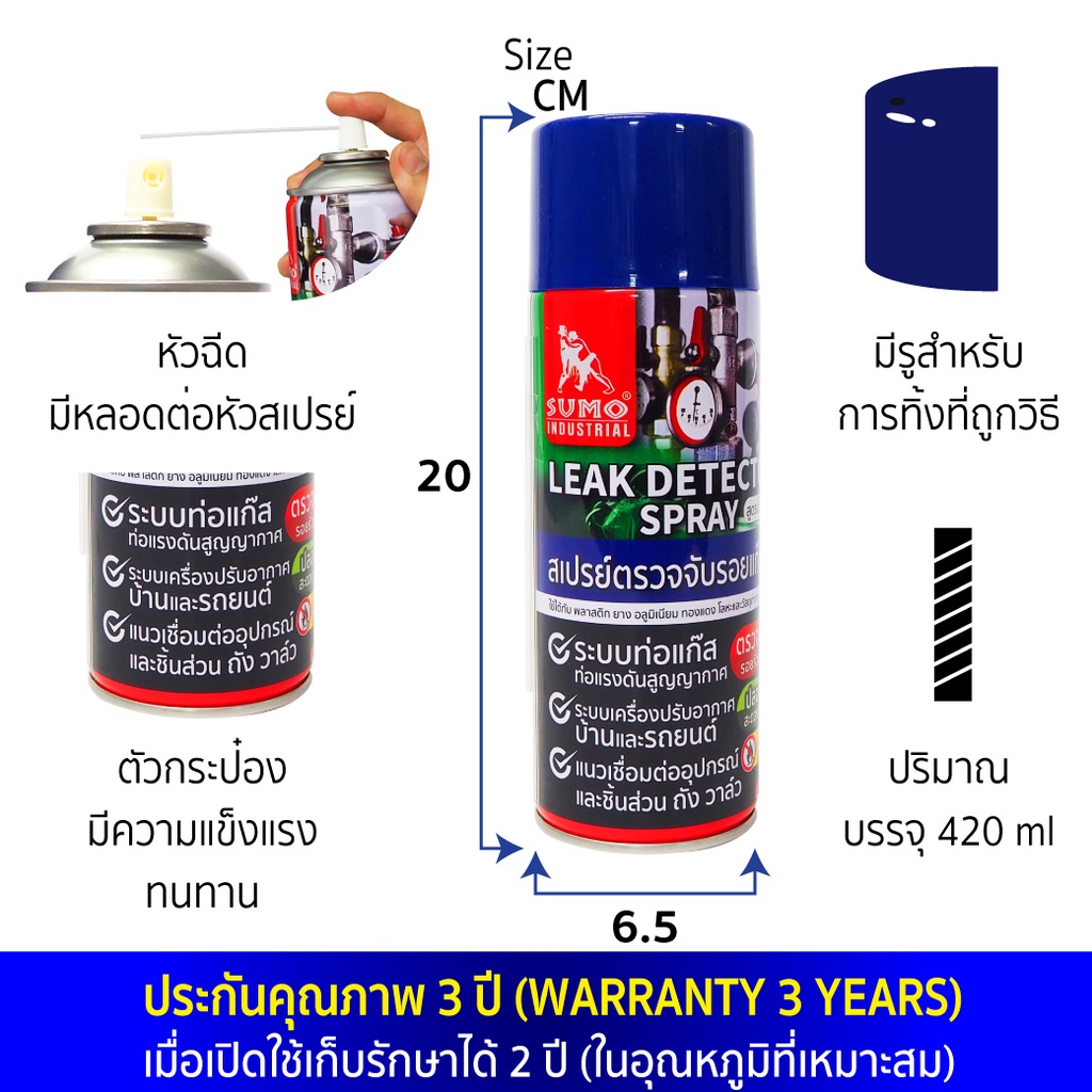 สเปรย์ตรวจจับรอยแก๊สรั่ว SUMO 420 ml. OIL สเปรย์ เช็ครอยรั่วแอร์ ตรวจคอยล์ร้อน เย็น bonus