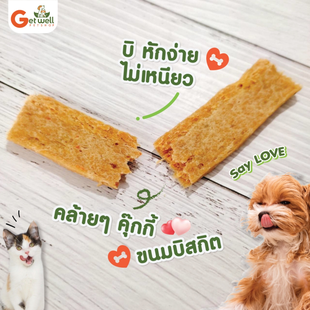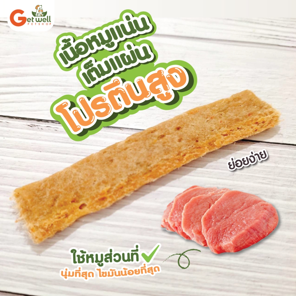 Get Well หมูแผ่นผสมผักอบกรอบ เสริมวิตามิน เสริมไฟเบอร์จาก ผัก 3 สี ขนมหมา ขนมแมว