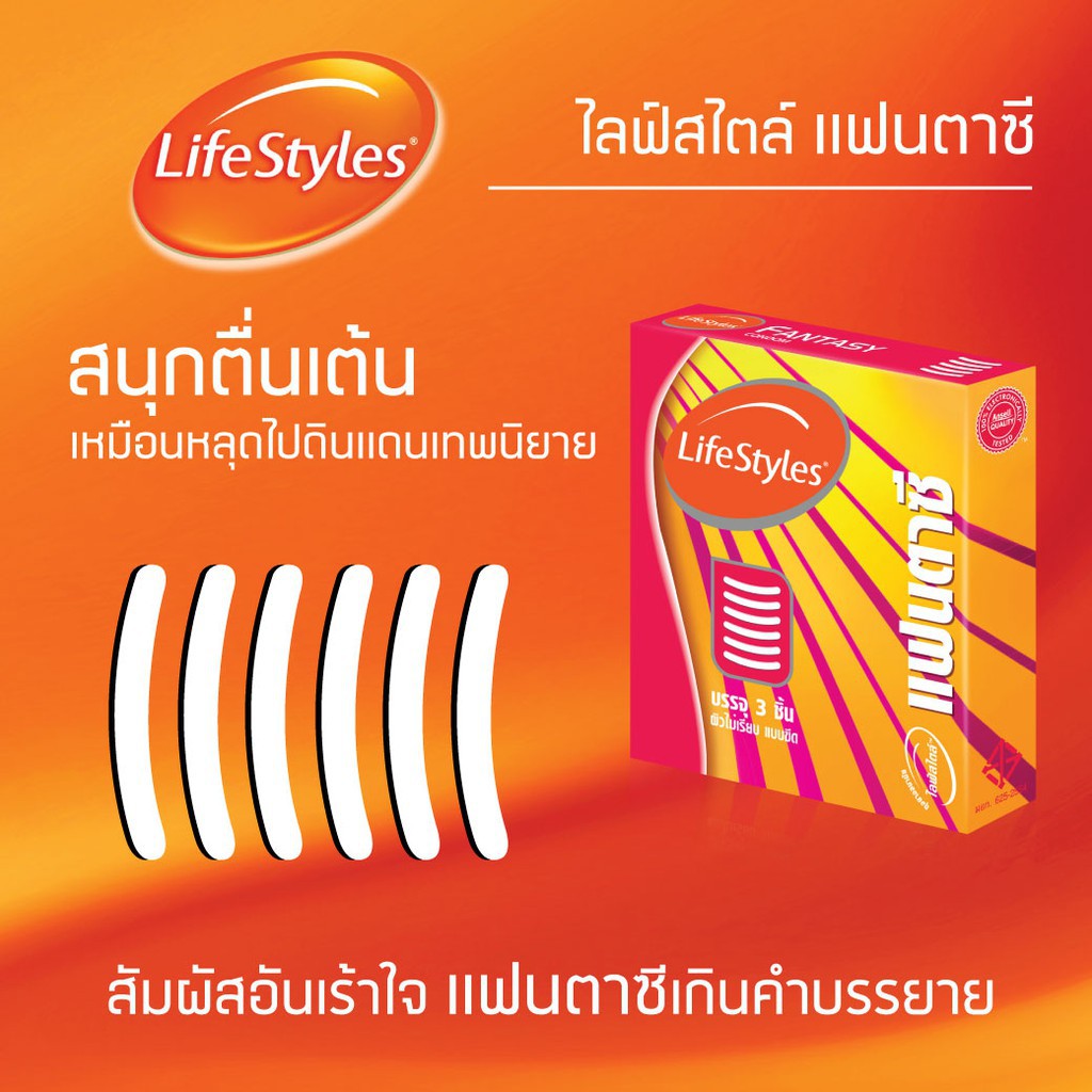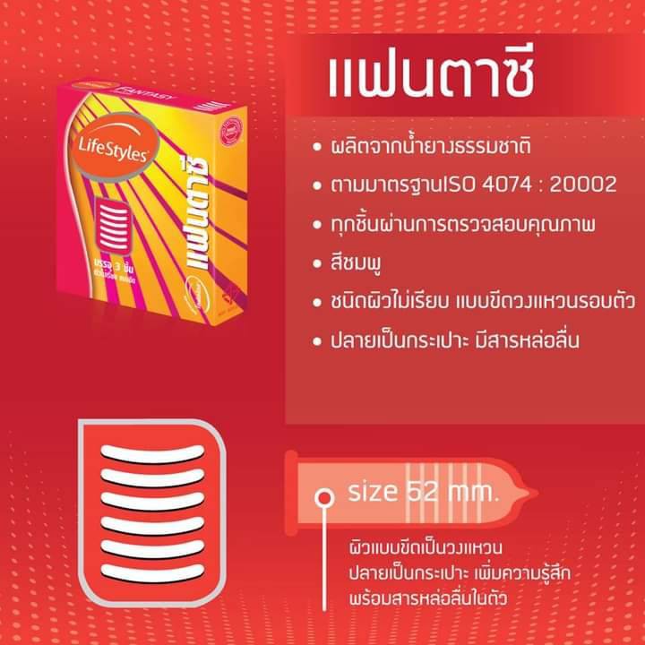LifeStyles Fantasy ถุงยางอนามัย ไลฟ์สไตล์ แฟนตาซี ขนาด 52 มม. บรรจุ 3 ชิ้น [1 กล่อง] JJ 4137 ผิวไม่เรียบ แบบขีด ถุงยาง