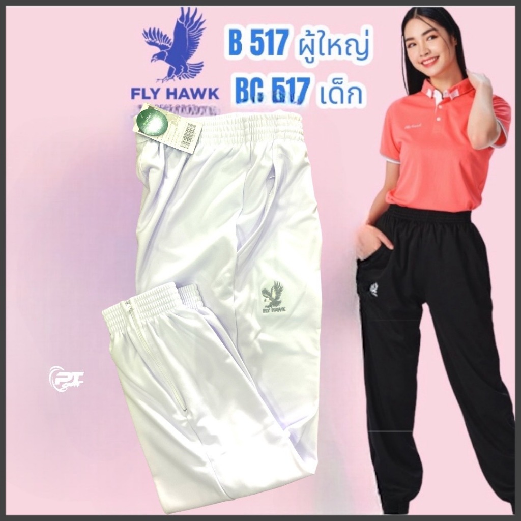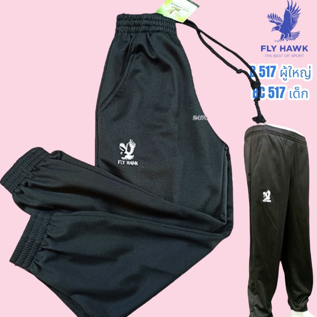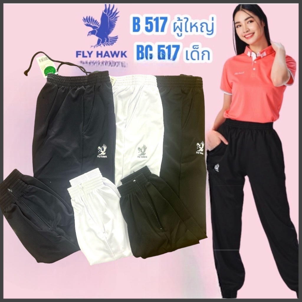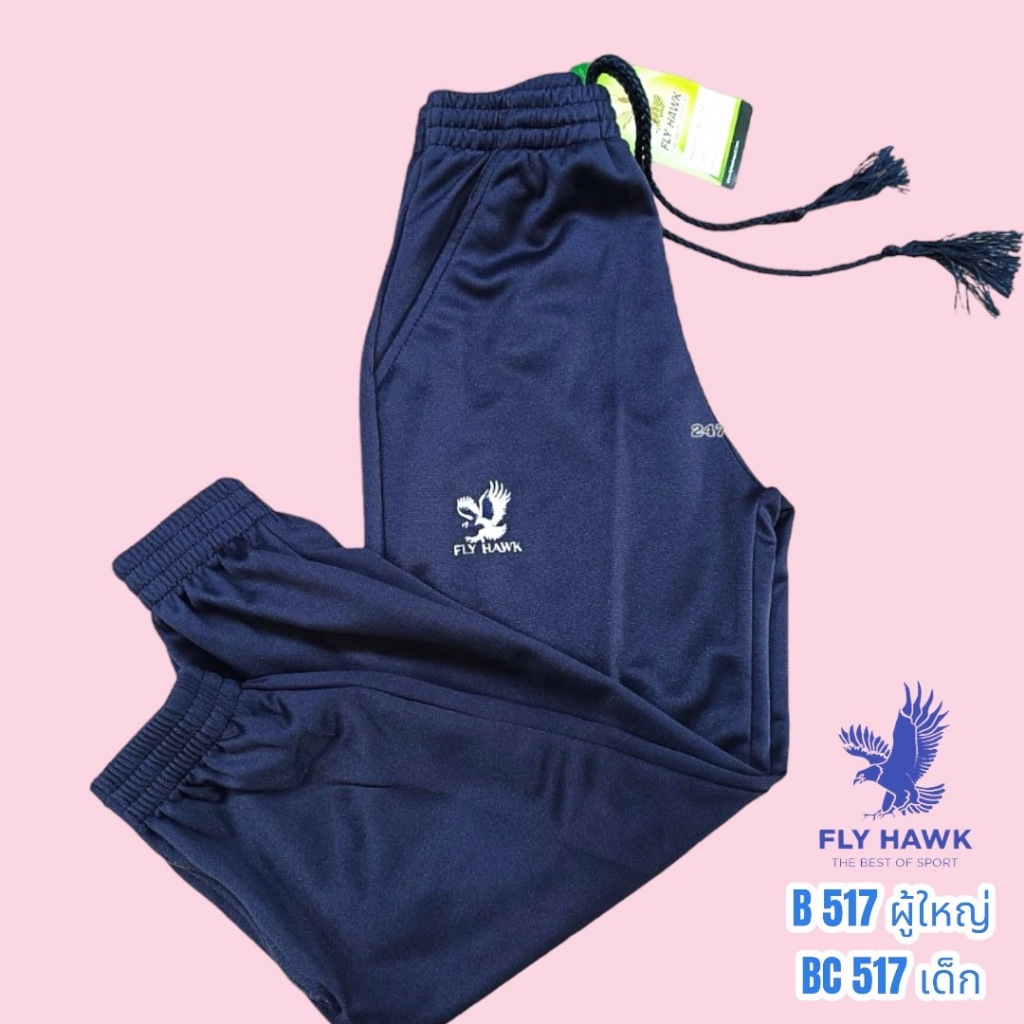 B517(ผู้ใหญ่)BC517(เด็ก)กางเกงวอร์มขายาวยี่ห้อ flyhawkวอร์มขารัด ใส่สบาย ไม่ร้อน ปลายขามีซิป กระเป๋ากางเกงมีซิป เนื้อดี
