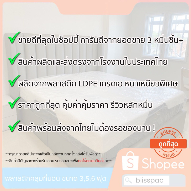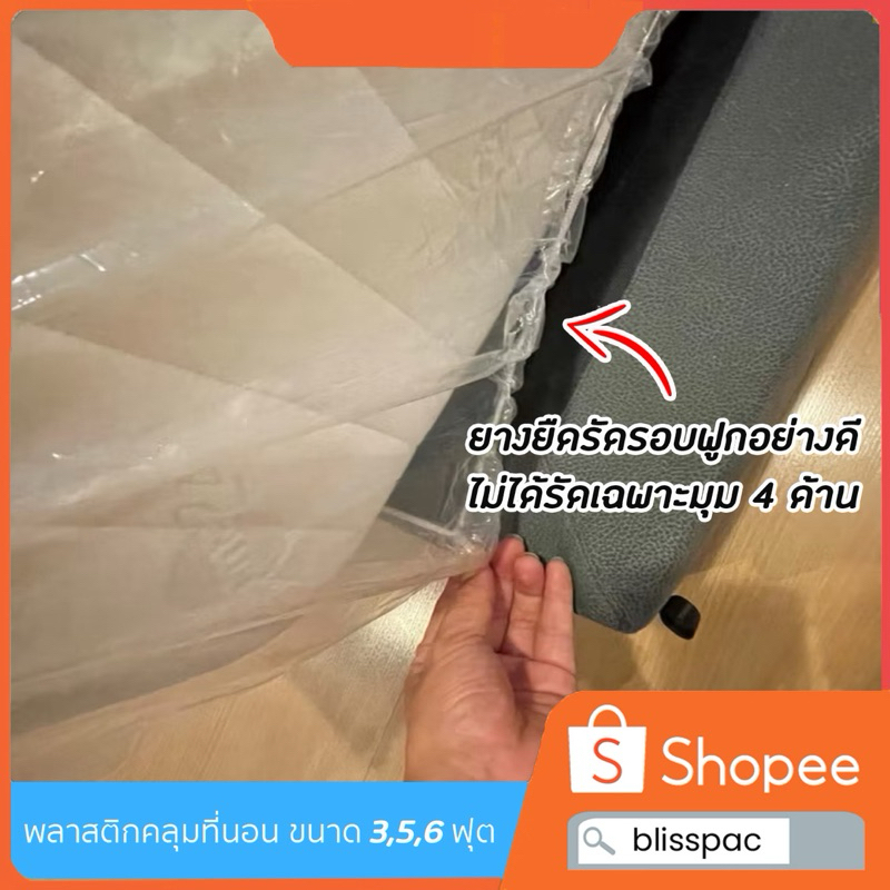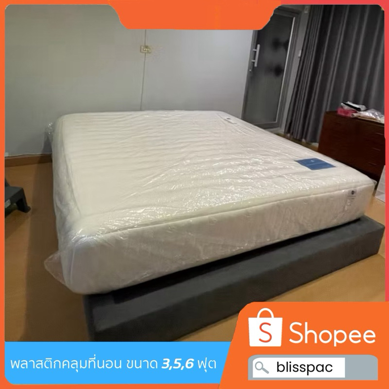 (ส่งจากโรงงานในไทย)พลาสติกคลุมที่นอน คลุมฟูกนอน ขนาด 3,5,6 ฟุต หนาไม่เกิน 12 นิ้ว มียางยืดรัดรอบถุง