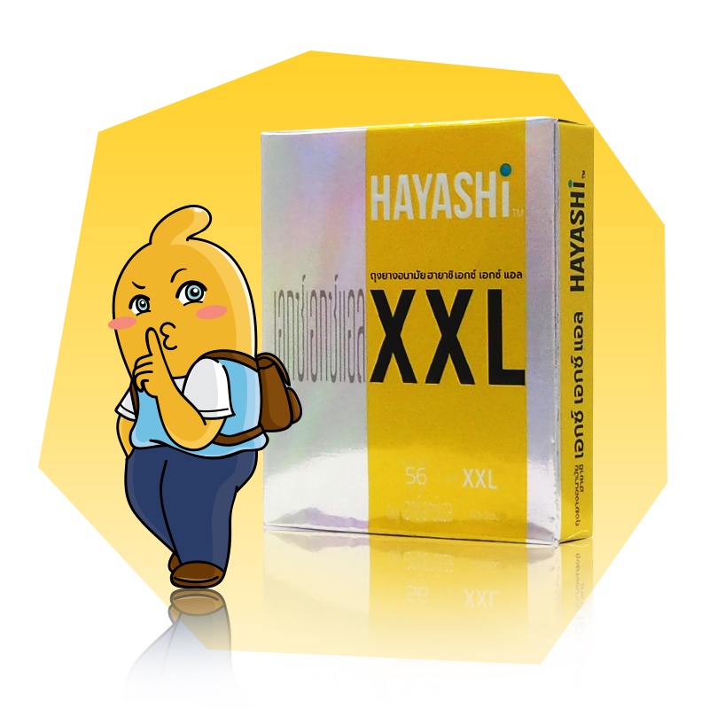 Hayashi XXL ถุงยางอนามัย ใหญ่พิเศษ ผิวเรียบ สวมใส่ง่าย ขนาด 56 มม. บรรจุ 1 กล่อง (2 ชิ้น)