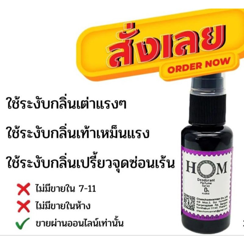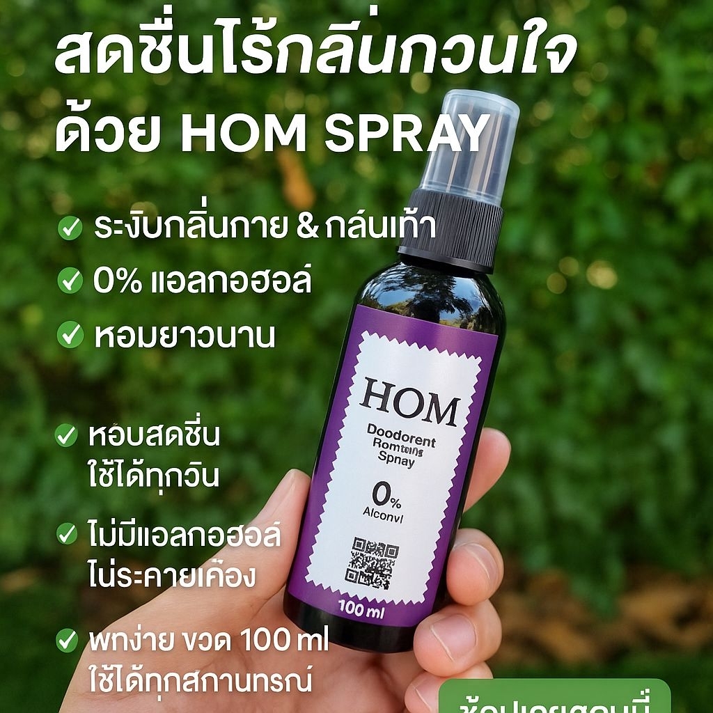 HOM สเปรย์หอมระงับกลิ่นตัวแรง กลิ่นเท้า กลิ่นอับจุดซ่อนเร้น ไร้แอลกอฮอล์