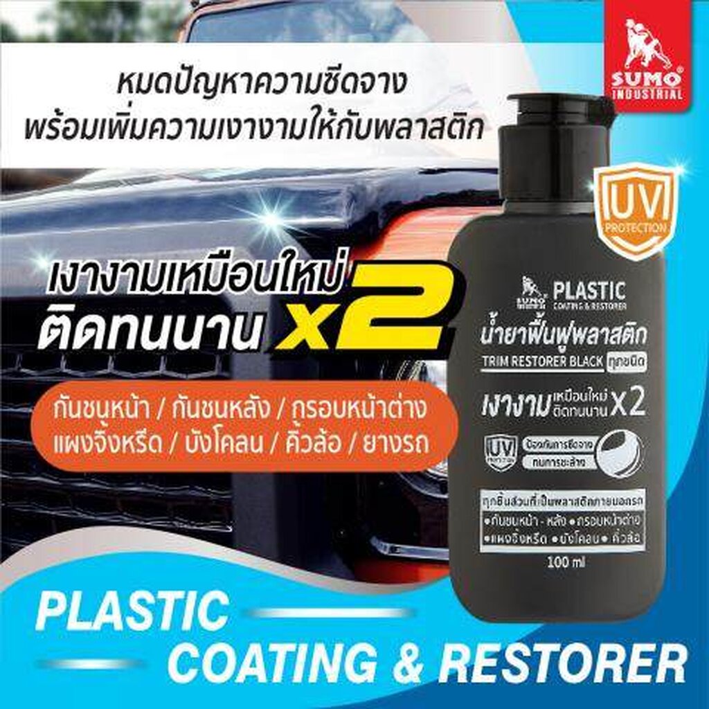 SUMO น้ำยาเคลือบฟื้นฟู น้ำยาเคลือบพลาสติก น้ำยาเคลือบฟื้นฟูพลาสติกดำ 100ml SUMO น้ำยาฟื้นฟูพลาสติก