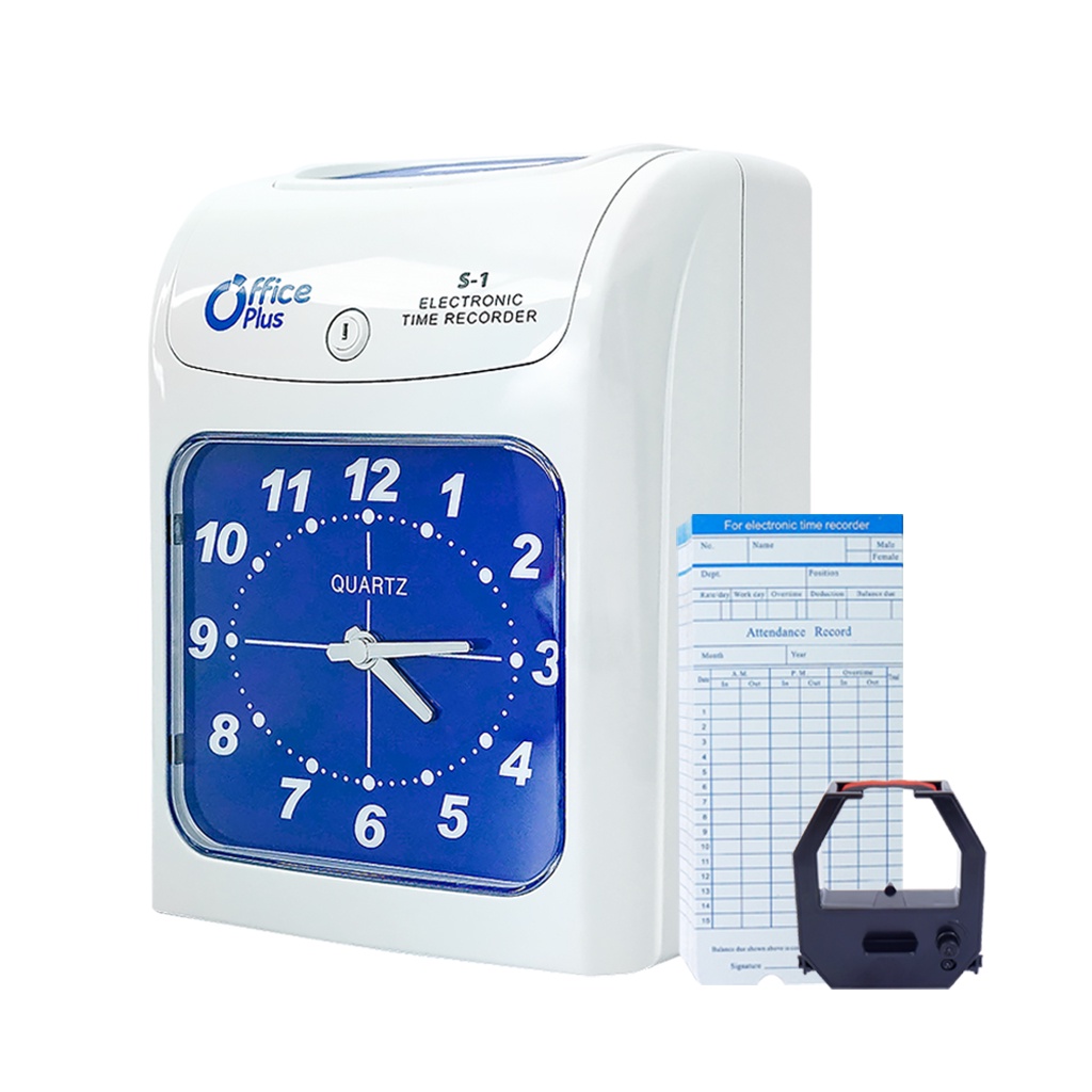 Office Plus เครื่องตอกบัตร รุ่น S-1 [รับประกันศูนย์ 2 ปี] แถมฟรี! บัตรตอก100 ใบ + ผ้าหมึก Officeplus
