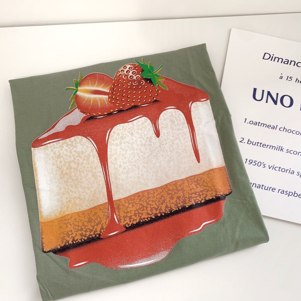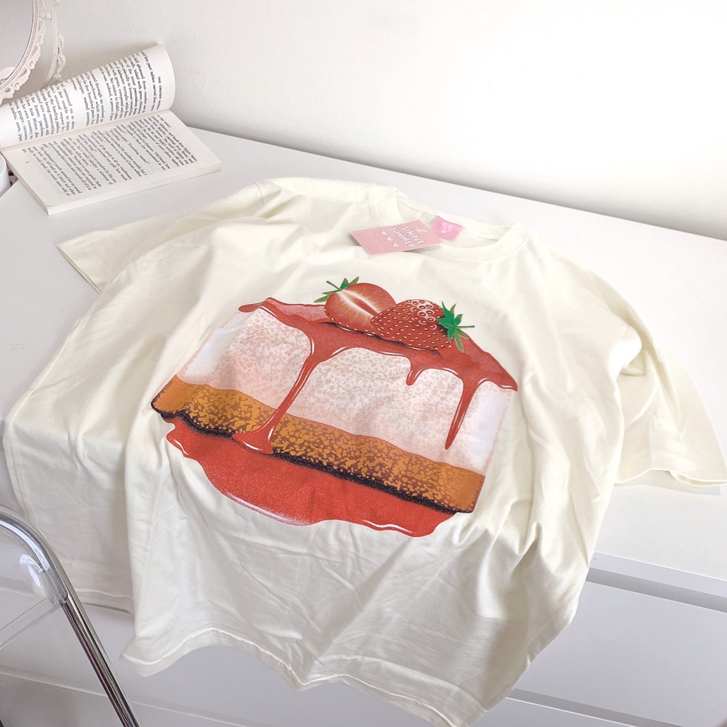 S134 เสื้อยืด oversize ผ้าคอตตอน สกรีน strawberry cheesecake 🍓🧀🍰
