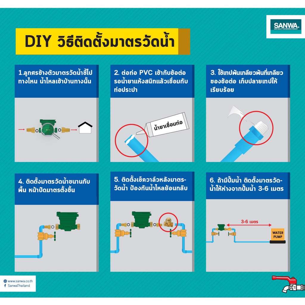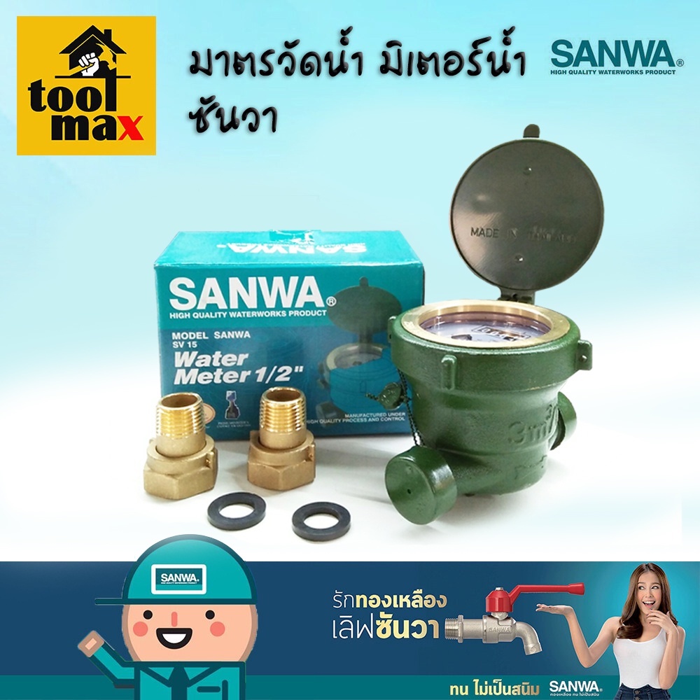 มิเตอร์น้ำ Sanwa มาตรวัดน้ำ มาตรน้ำ มาตราน้ำ มิเตอร์ประปา ซันวา ขนาด 1/2" (4 หุน) SV-15 และ SV-P15