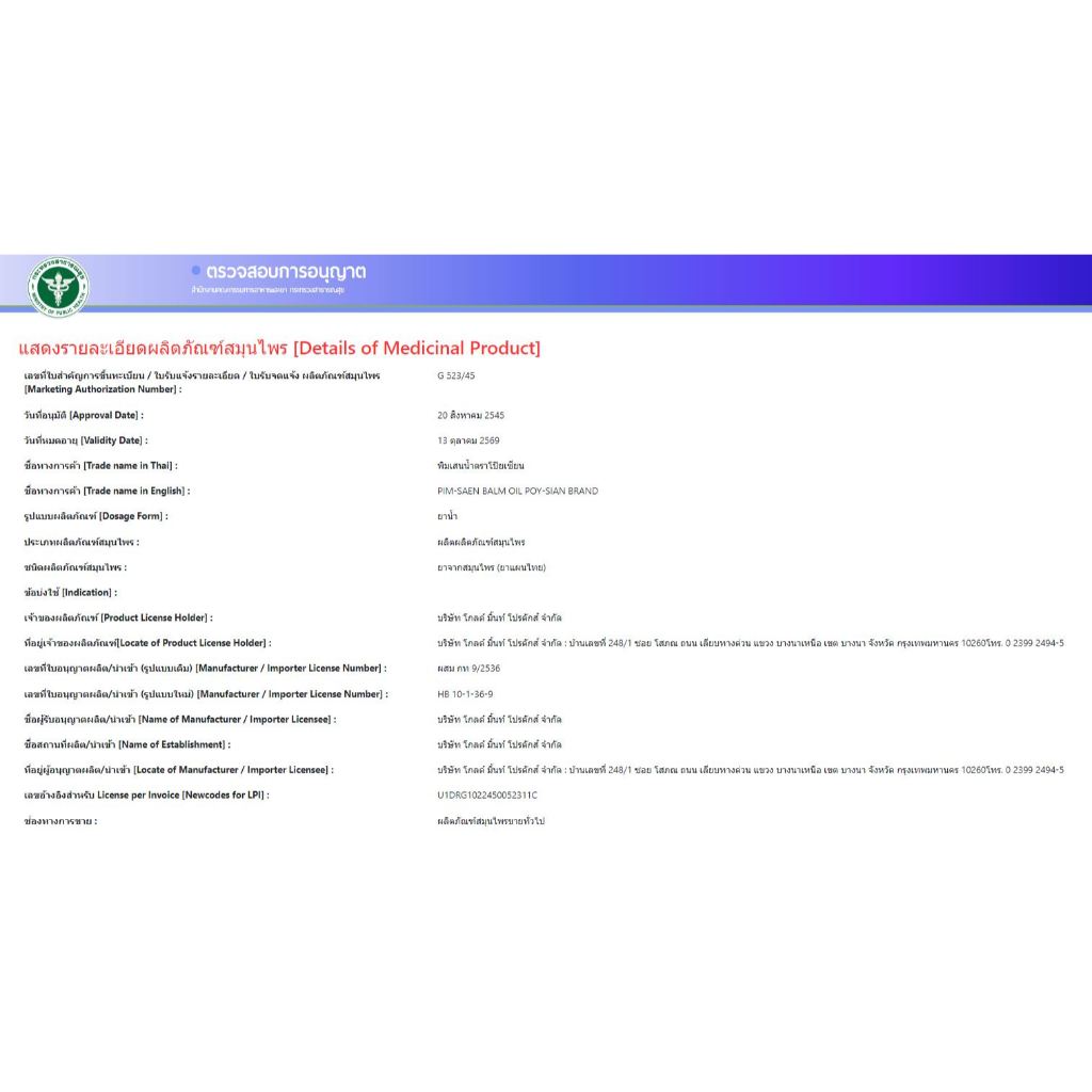 พิมเสนน้ำโป๊ยเซียน (แบบสำลี) 8cc POYSIAN - 1 ขวด