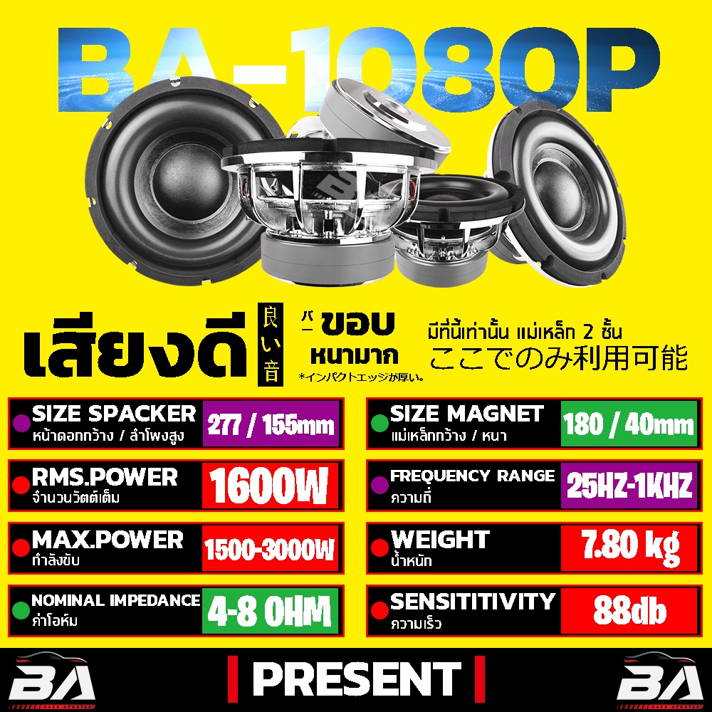 BA SOUND ลำโพงซับวูฟเฟอร์ ขนาด 10 นิ้ว BA-10180P แม่เหล็ก180*40 แม่เหล็ก 2 ชั้น วอยซ์คู่ ลำโพงซับ 10 นิ้ว ลำโพง 10 นิ้ว