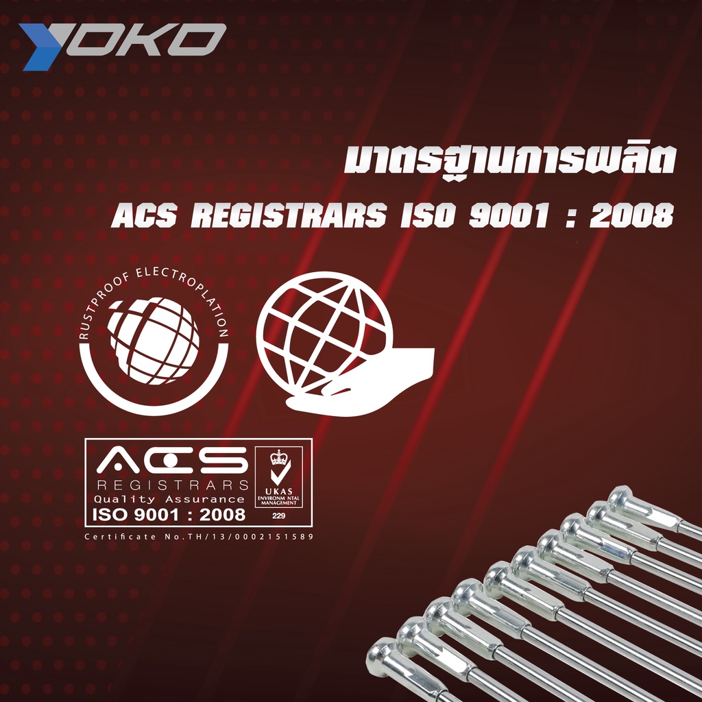 ซี่ลวด YOKO โยโก ชุบโครเมียม เงา ผลิตจากลวดคาร์บอนคุณภาพสูง แข็งแกร่ง ทนทาน ครบเบอร์ ของแท้ 100%