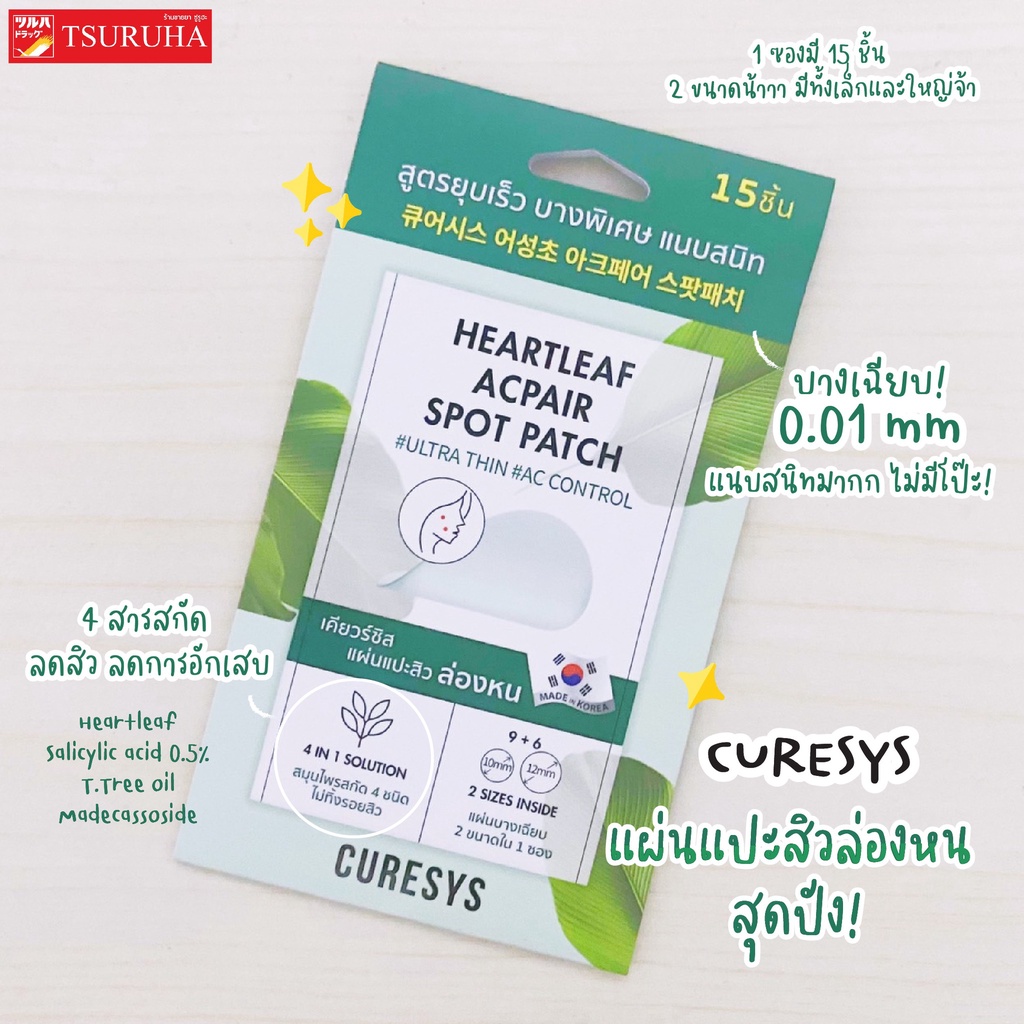 เคียวร์ซิส ฮาร์ทลีฟ แอคแพร์ แผ่นซับสิว/CURESYS Heartleaf Acpair Spot Patch
