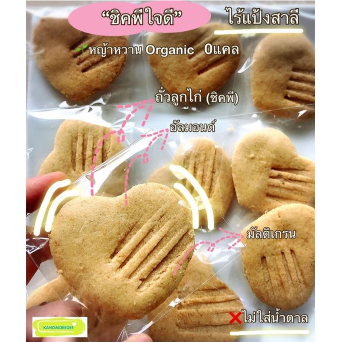 Kanomdeedee "ชิคพีใจดี" คุกกี้ถั่วลูกไก่ ไร้แป้งสาลี ไม่ใส่น้ำตาล,นม,เนย หรือไข่ Vegan/คุกกี้เจ
