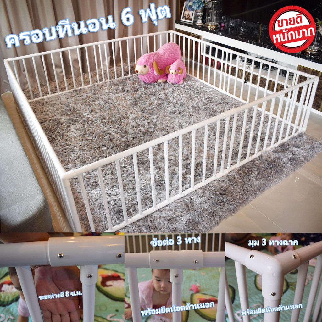 คอกกั้นครอบเตียง6ฟุตได้พอดีW83✅คานหนา8หุนไม่แอบลดสเปค❌ข้อต่อ3ทางฉากทุกชิ้น