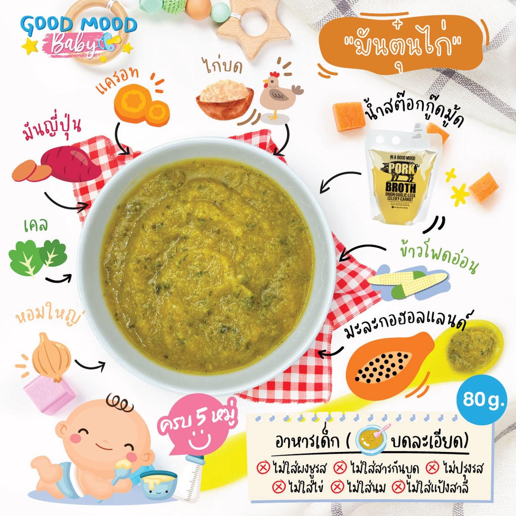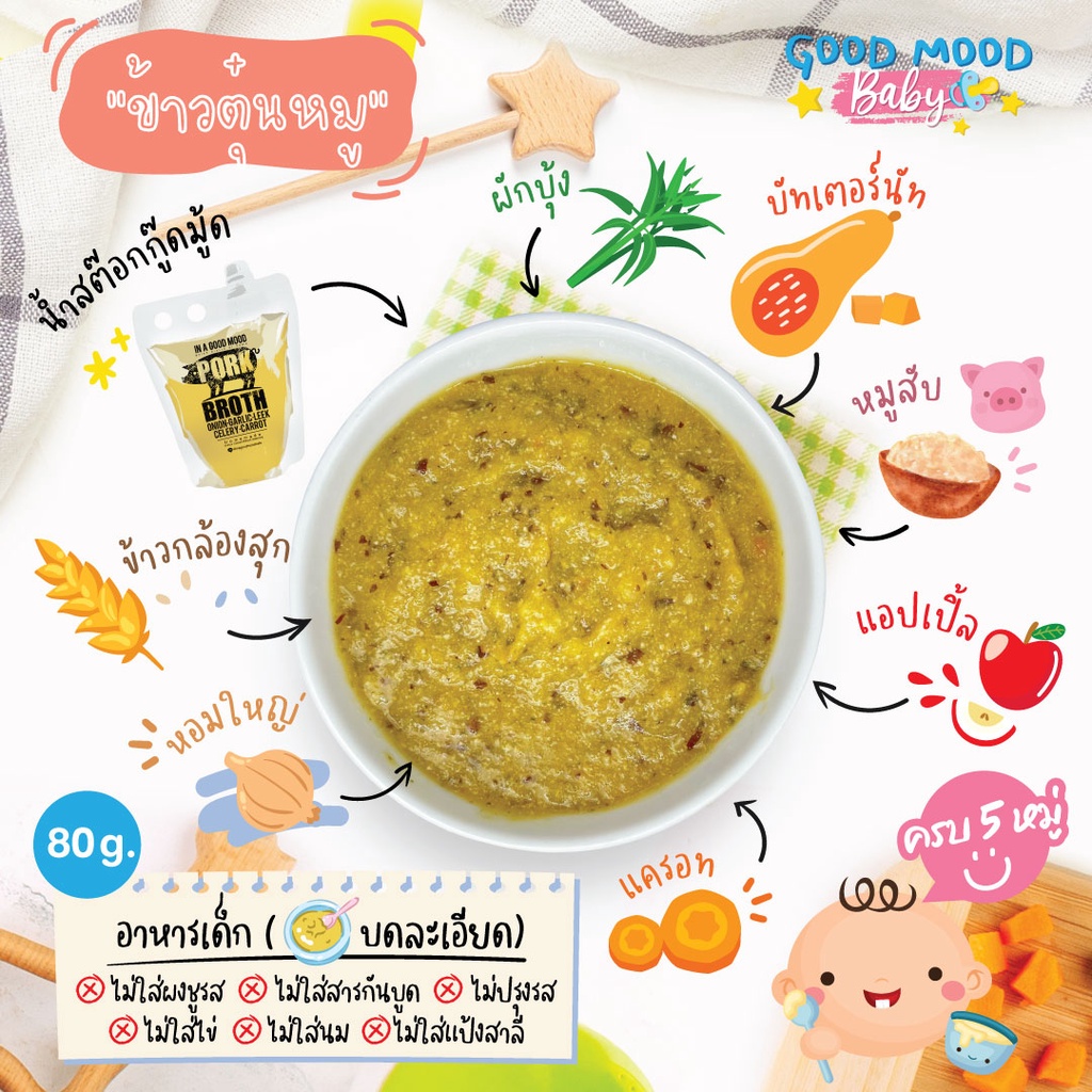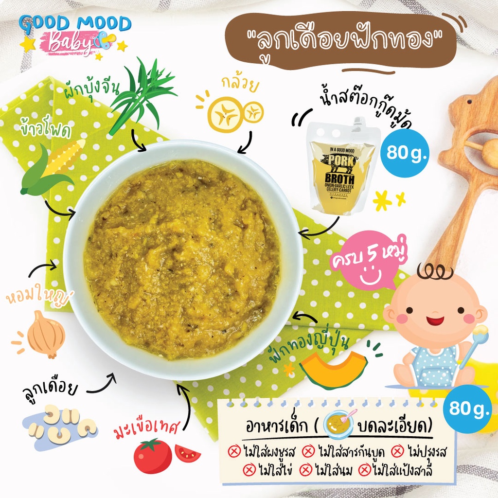 อาหารเสริมบดละเอียด 14 ถุง (รสชาติละ 2 ถุง) สำหรับเด็ก 6-8 เดือน