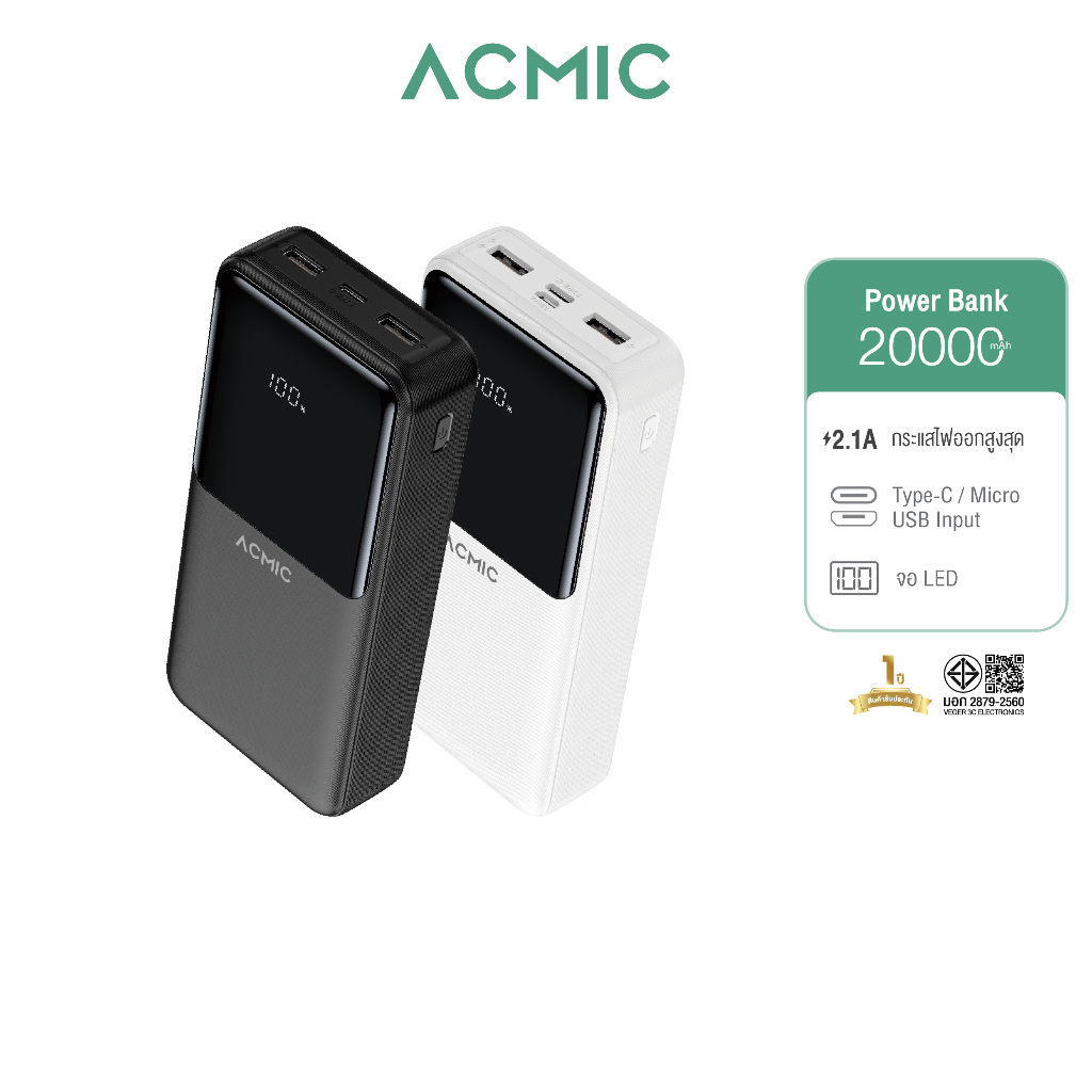 ACMIC AP20-07 PRO Powerbank 20000mAh พาวเวอร์แบงค์ หน้าจอแสดงผล LED ช่อง USB จ่ายไฟ 2.1 ประกัน 1 ปี