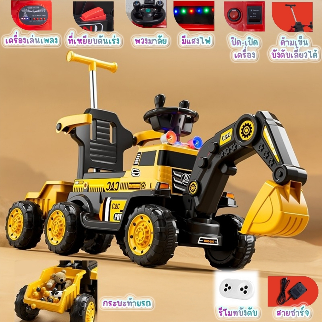 ⭐️Y&YToys Kids⭐ รถแบตเตอรี่ไฟฟ้าเด็ก รถแมคโครไฟฟ้าคันใหญ่ มีไฟมีเสียง ขับได้ มีรีโมทบังคับ ของเล่น