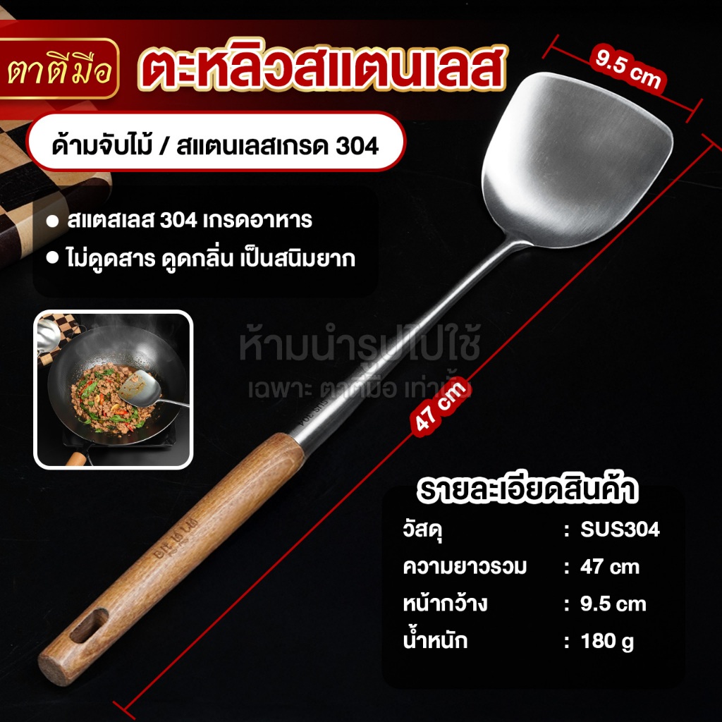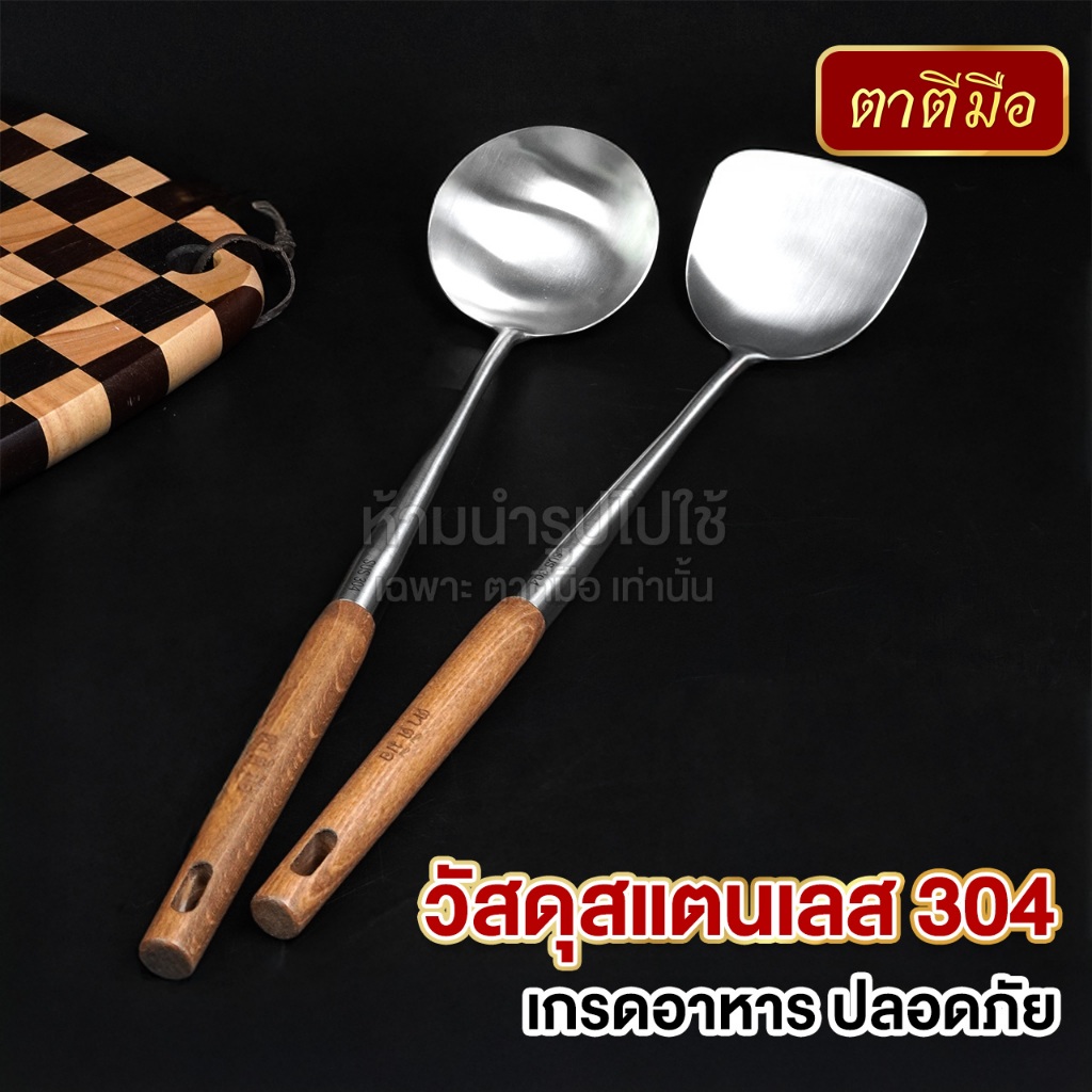 ตาตีมือ กระบวย ตะหลิว สแตนเลส304 กระบวยด้ามไม้ ตะหลิวด้ามไม้ รับประกันสินค้า 30 วัน