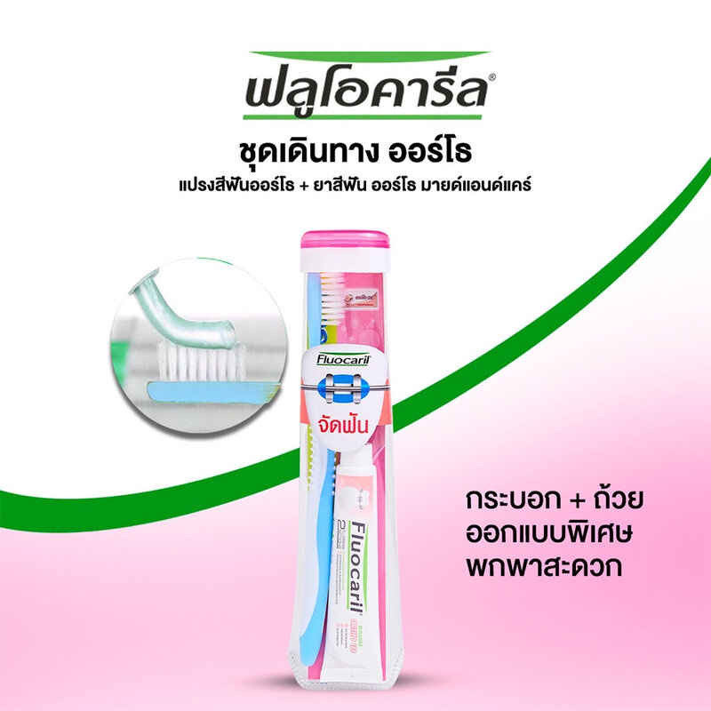 Fluocaril Orthodontics Travelling Set Toothbrush And Toothpaste [Random 1 Color] ชุดแปรงสีฟันพกพาสำหรับคนจัดฟัน.