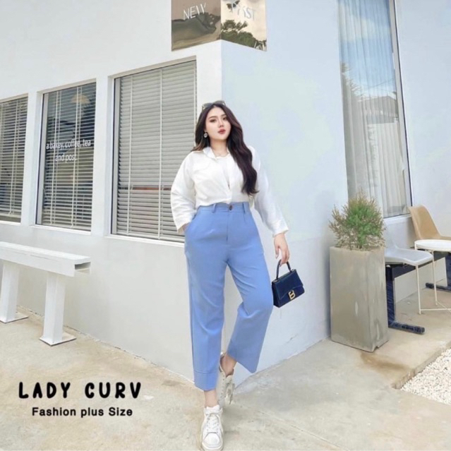 กางเกงขายาว รุ่น 8 ส่วน ขากระบอกเล็ก สำหรับสาวอวบ สะโพกใหญ่