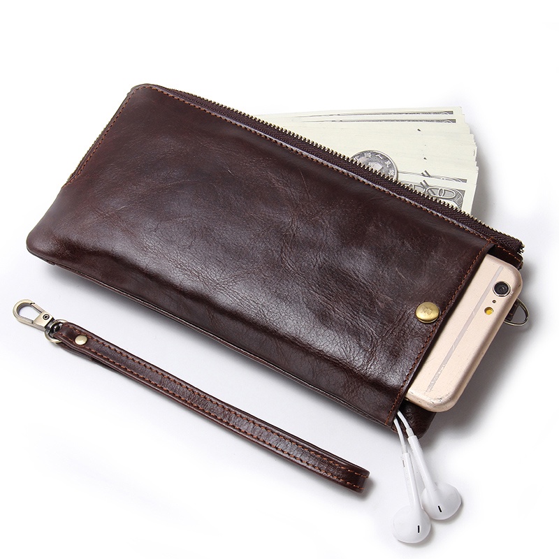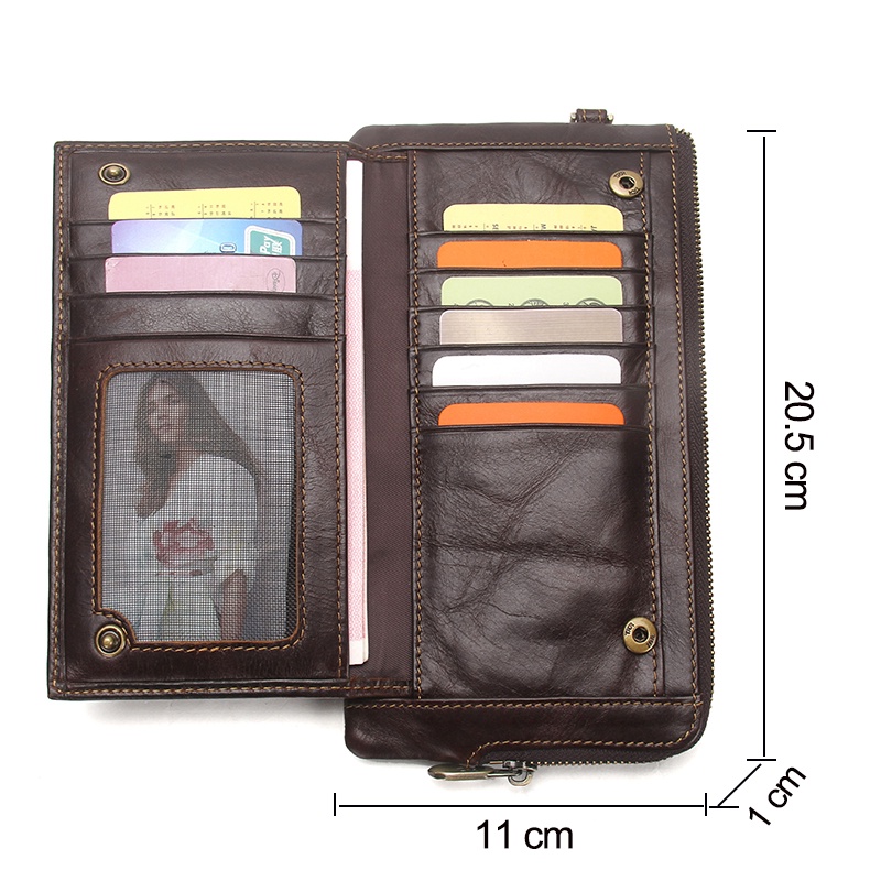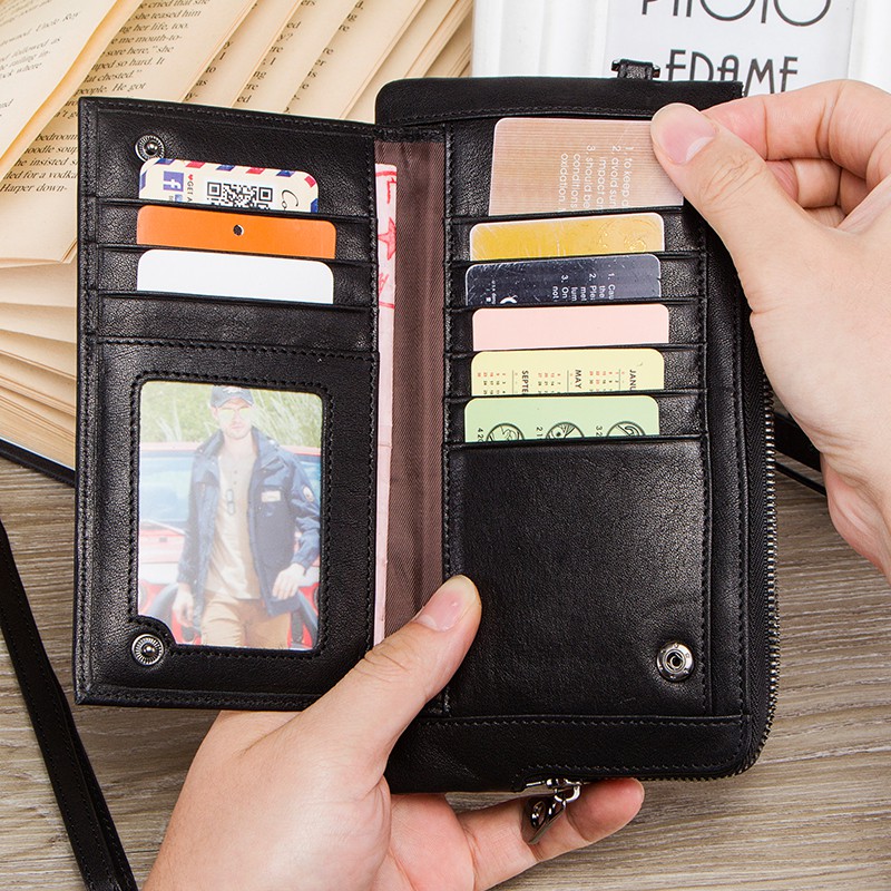 CONTACT'S กระเป๋าสตางค์ หนังแท้ ใบยาว มีซิป ใส่เหรียญได้ สําหรับผู้ชาย