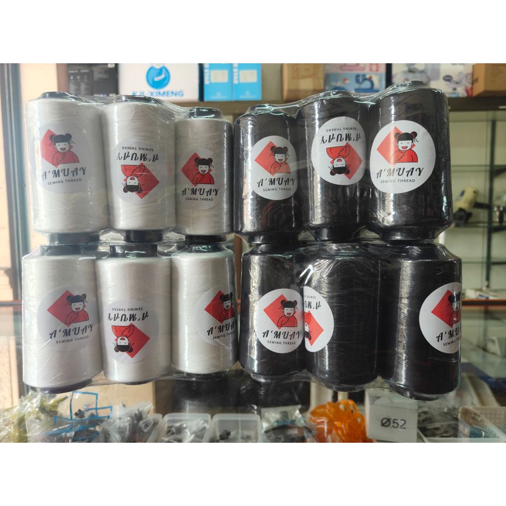 ด้ายเย็บผ้า เบอร์40/2สีขาวออฟไวท์ สีดำ ตราอาหมวย แพ็ค6หลอด