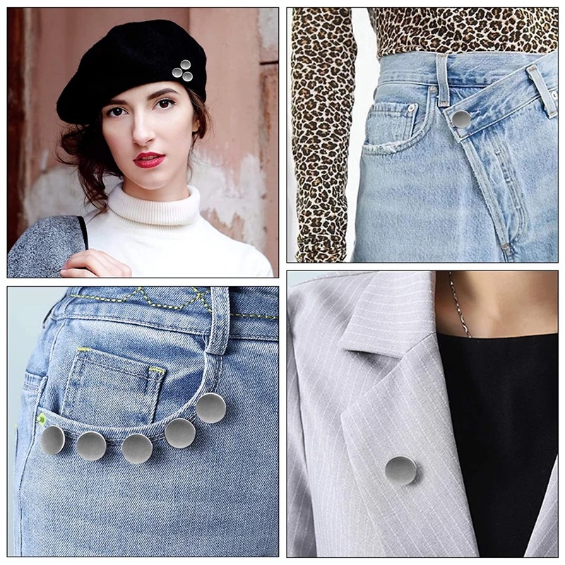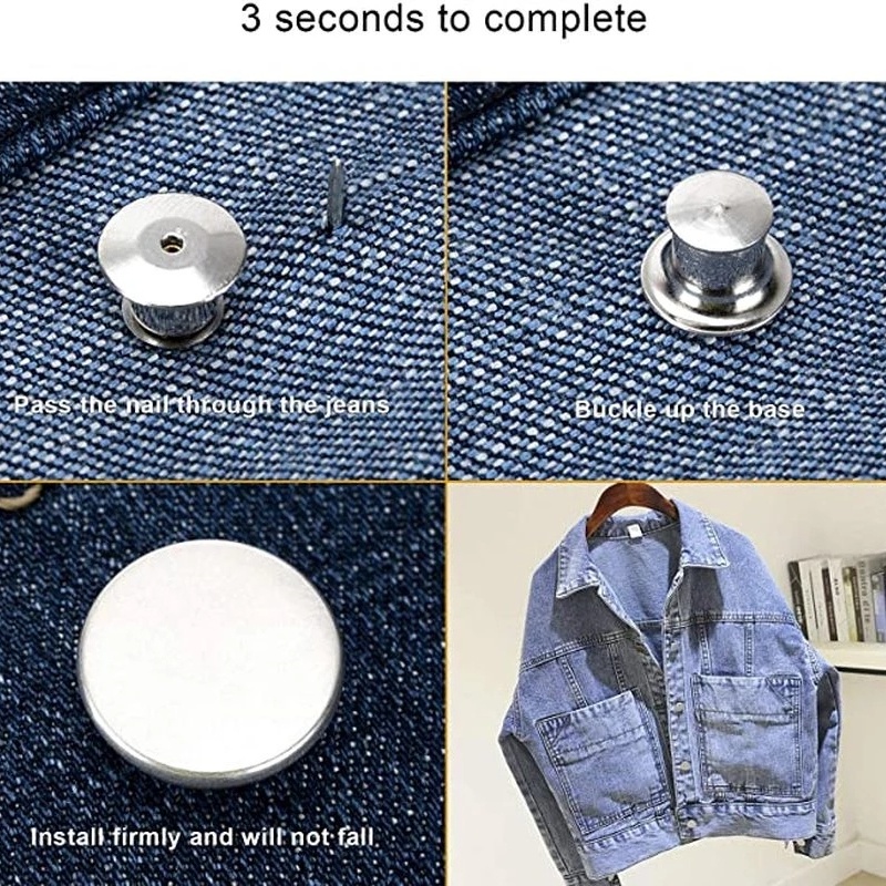 กระดุมโลหะ ถอดได้ ปรับได้ 4 ชิ้น ต่อชุด / หมุดติดกางเกงยีน 17 มม. สไตล์เรโทร แบบเปลี่ยน หัวเข็มขัดเย็บผ้า / อุปกรณ์กระดุมเสื้อผ้า พับเก็บได้ DIY