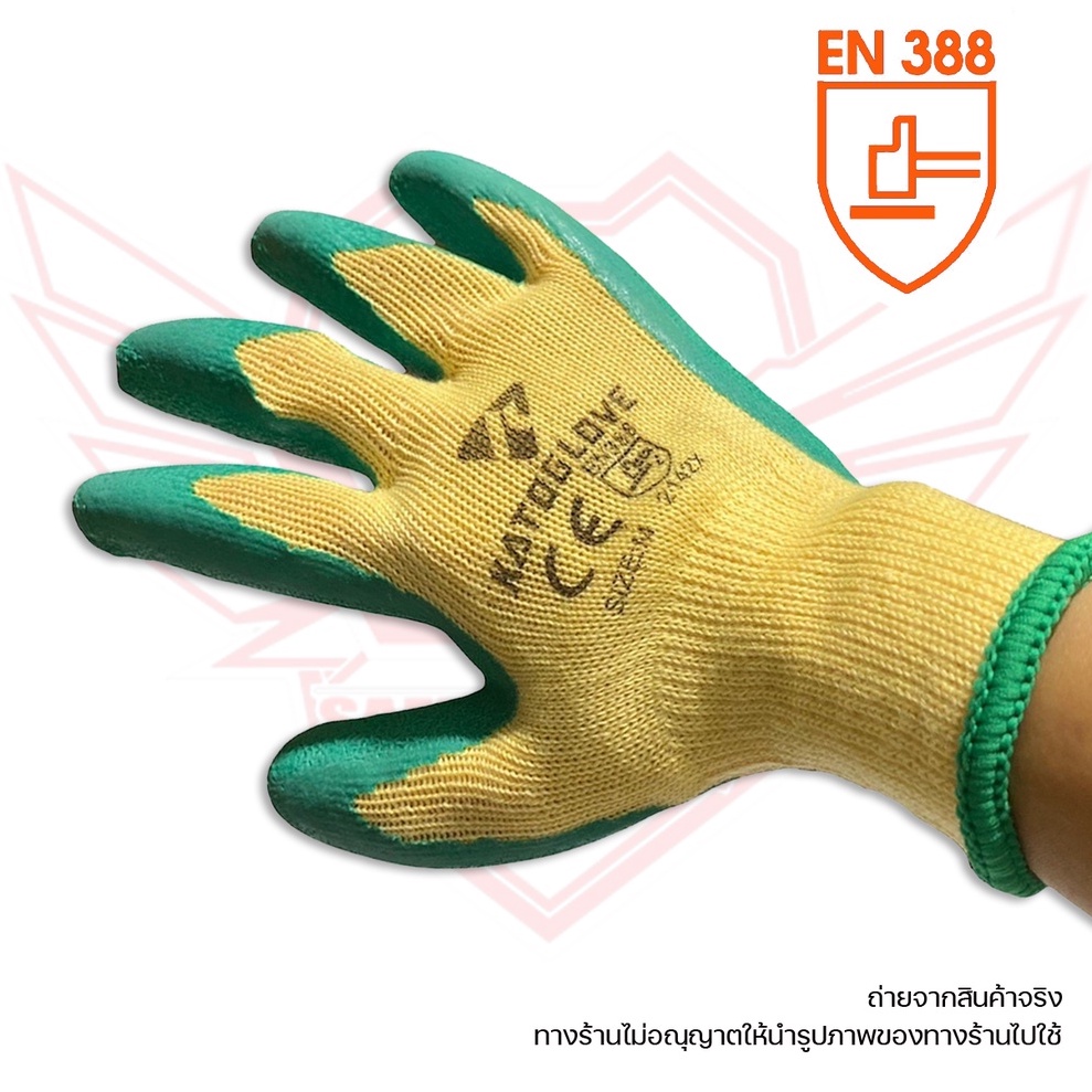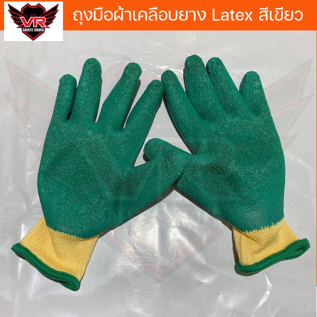 ถุงมือผ้าเคลือบยาง Latex (สีเขียว) กันบาด กันลื่น