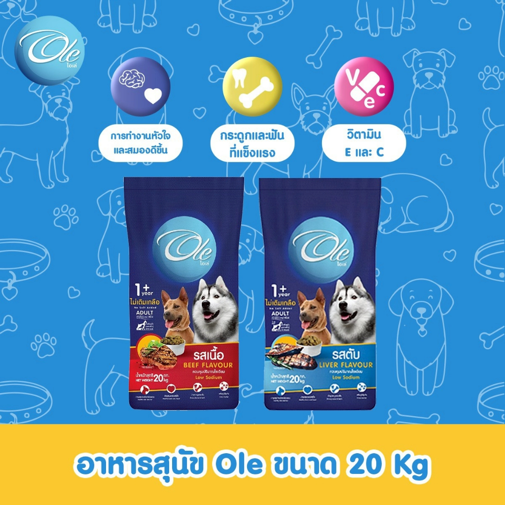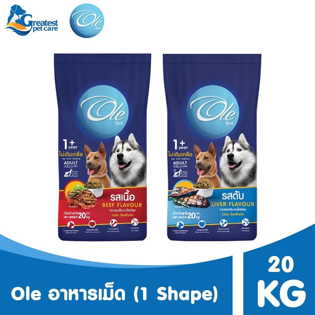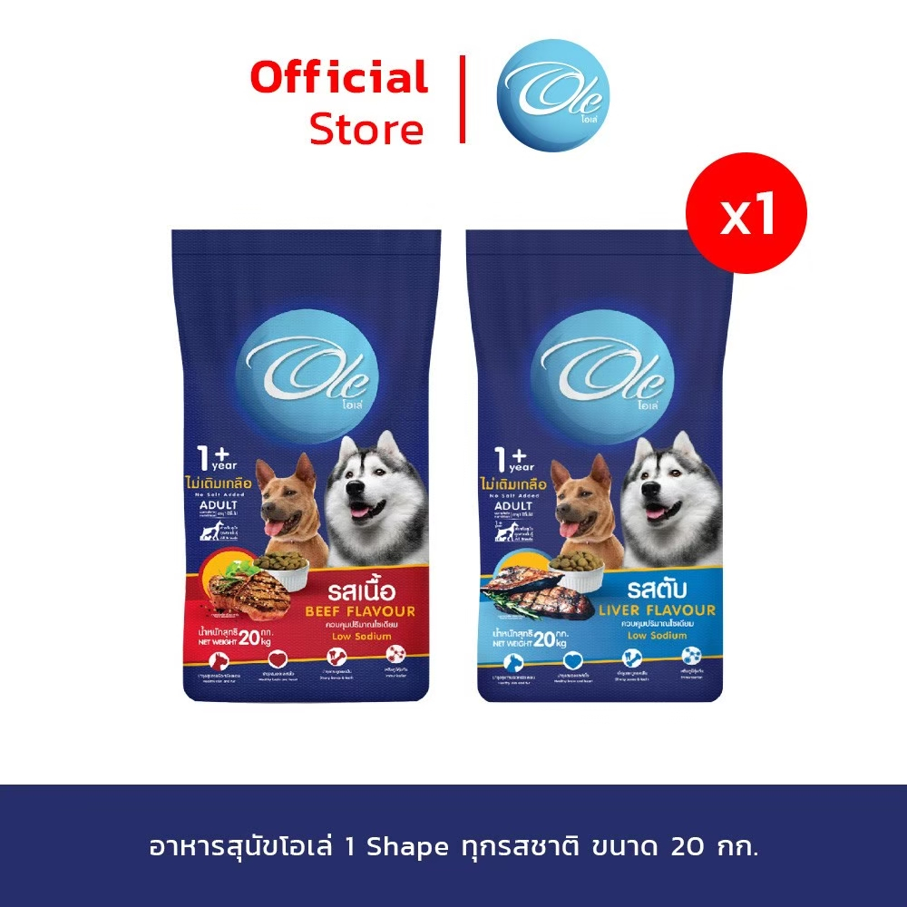 Ole 1 Shape รสเนื้อ/รสตับ ขนาด 20 kg. อาหารเม็ดสำหรับสุนัขทุกสายพันธุ์