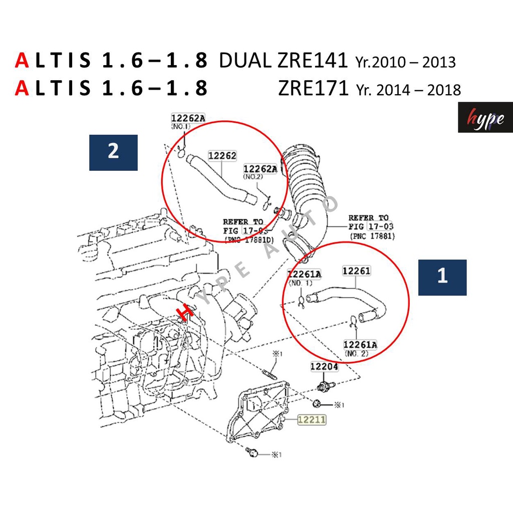 ท่อหายใจ ท่อระบาย บนฝาวาวล์ โตโยต้า อัลติส ALTIS 1.6 - 1.8 ดูอัล DUAL ปี 10 - 13 ZRE 141-142 , ปี 14 - 18 ZRE171-172