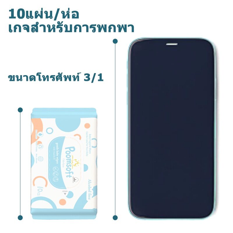Poomsoft ทิสชูเปียก กระดาษทิชชู่เปียก 10pcs Baby Wipes ปราศจากแอลกอฮอล์ ทิชชู่เปียกพกพา ทิชชุเปียก