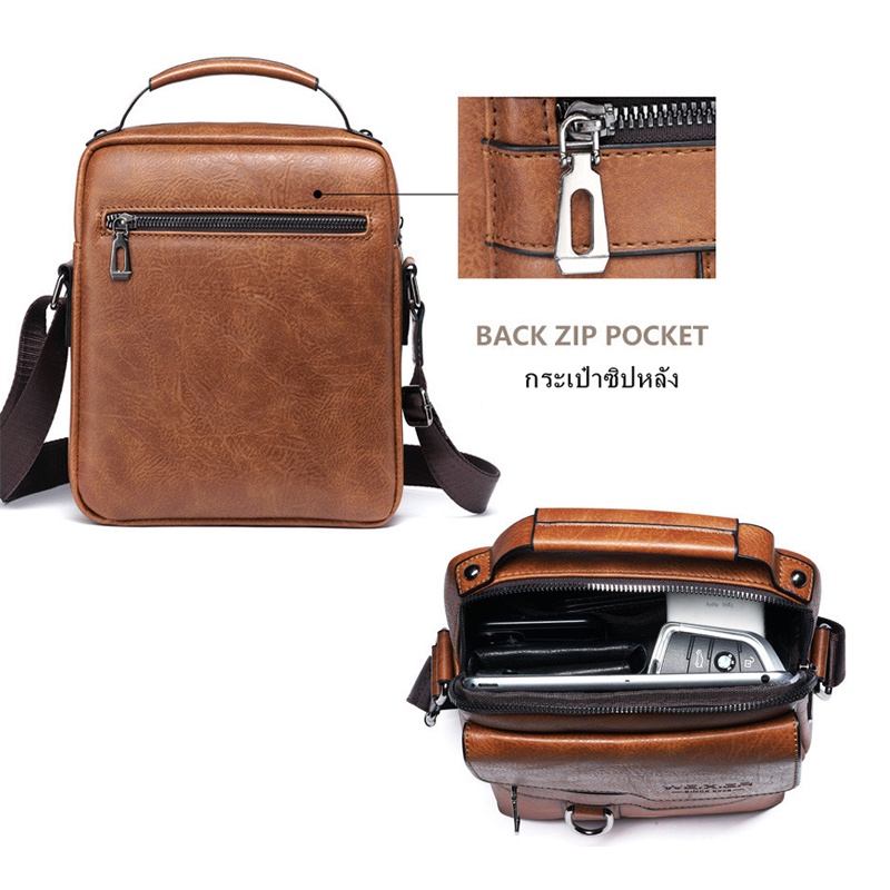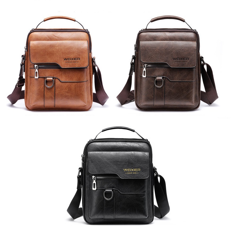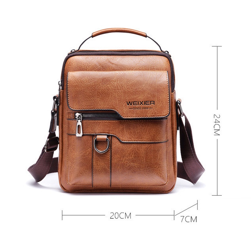 WEIXIER ผู้ชายยุโรปและอเมริกาหนังย้อนยุคกระเป๋าสะพายความจุขนาดใหญ่