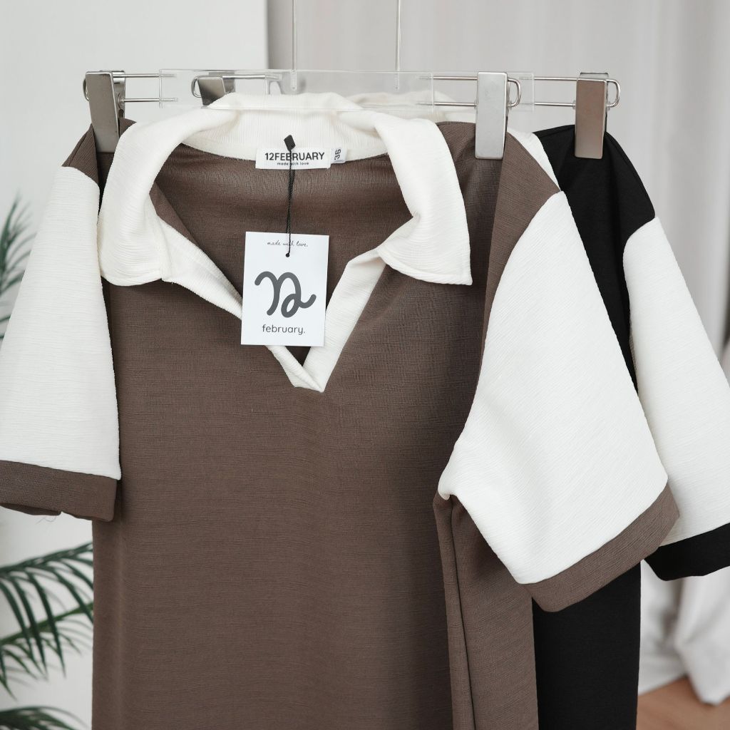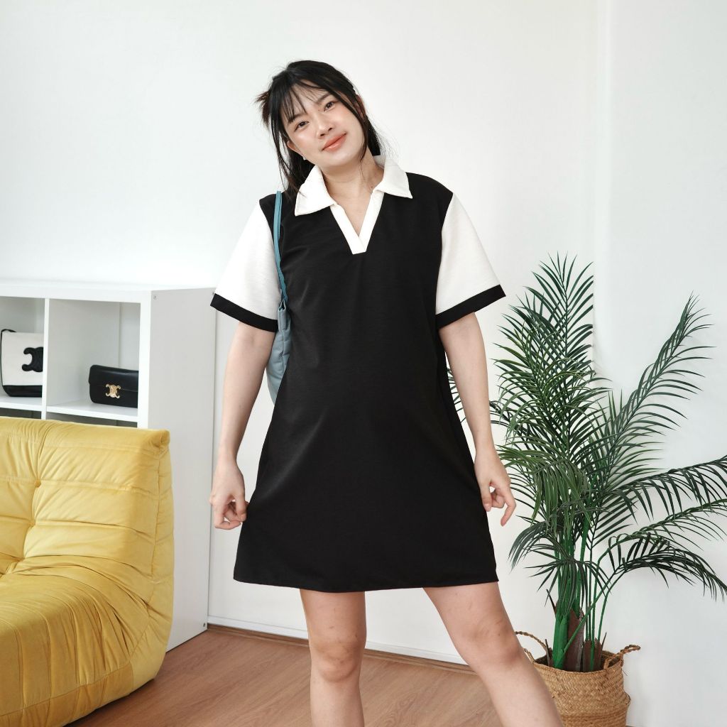 12FEBRUARY | CROFFLE DRESS เดรสทูโทน คอปกกว้าง ทรงสวยใส่สบาย ผ้าไม่ต้องรีด