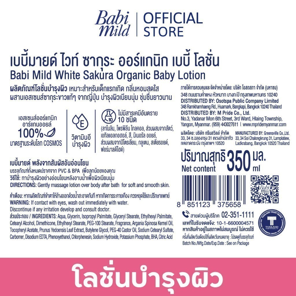 [BOGO] เบบี้มาย โลชั่น ไวท์ซากุระ 350มล 1แถม 1 / [BOGO] Babi Mild White Sakura Lotion 350ml