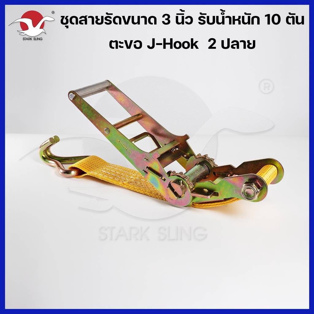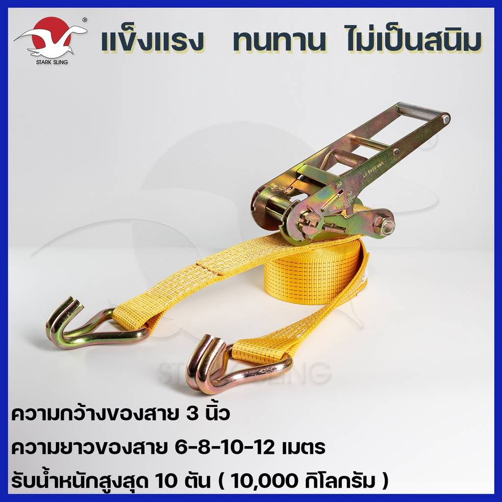 สายรัด Polyester หัวล็อคแบบโยก ยาว 6-12 เมตร รับน้ำหนักสูงสุด 10 ตัน