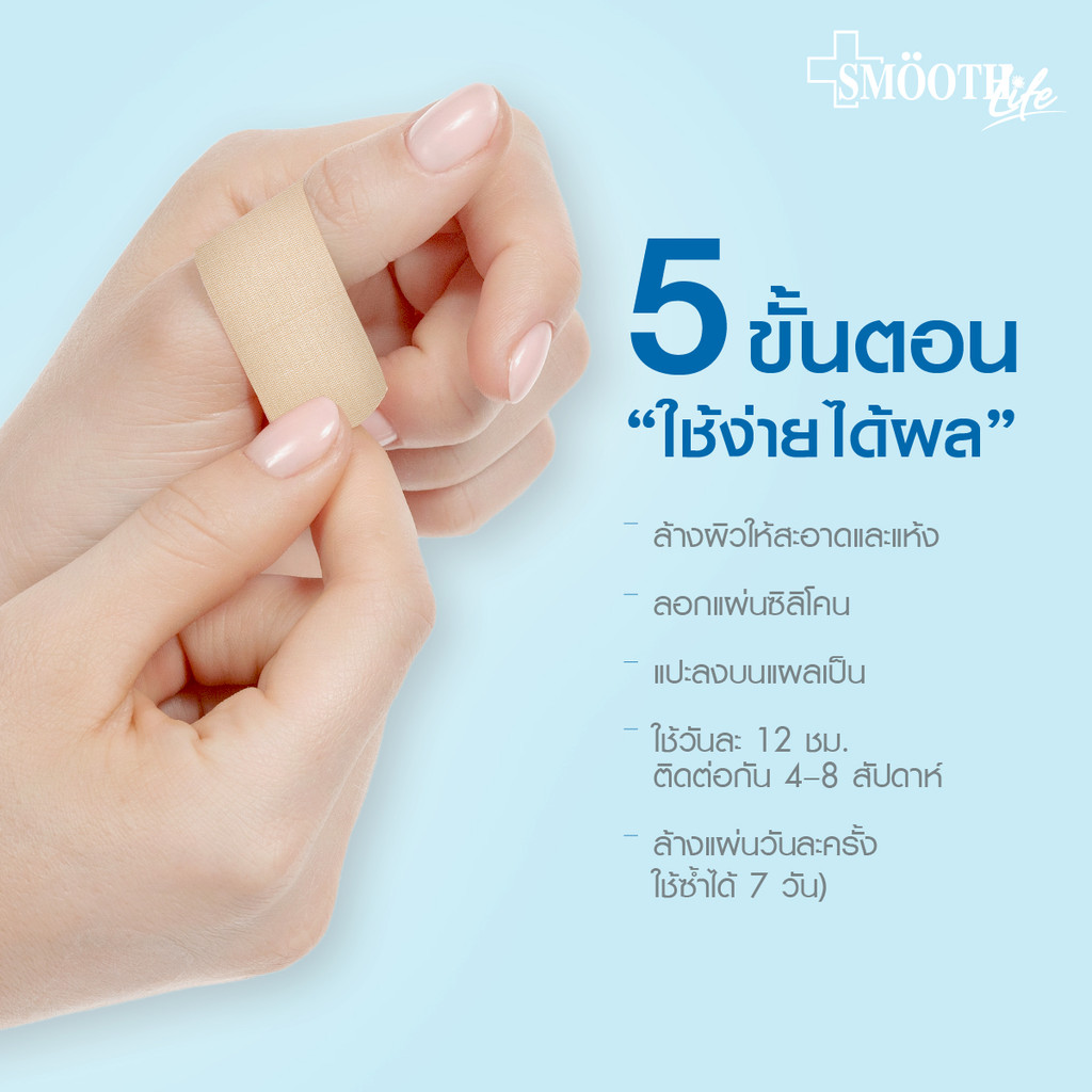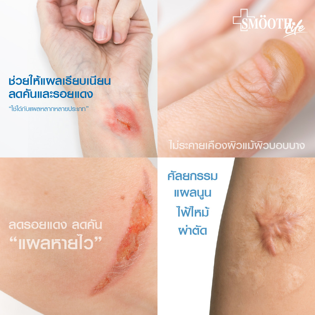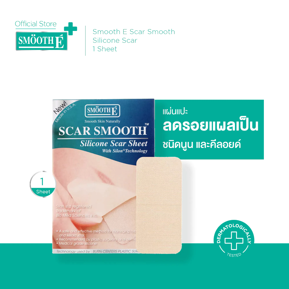 Smooth E แผ่นซิลิโคน แปะลดรอยแผลเป็นนูน คีลอยด์ 1 แผ่น Scar Smooth Silicone Scar Sheet แผลไฟไหม้ รอยแดง แผลผ่าตัด สมูทอี