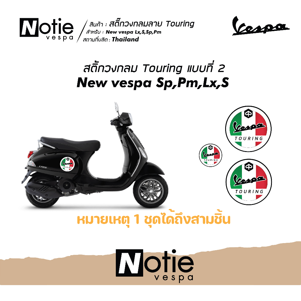 (ส่งฟรี) สติ๊กเกอร์newvespa สติ๊กวงกลมลาย Touring Newvespa ทุกรุ่นกันรอยขีดข่วน เกรด 3M notie vespa