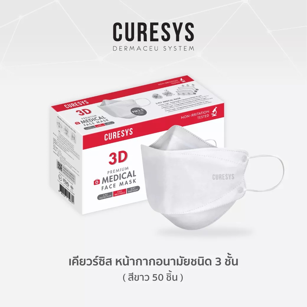 เคียวร์ซิส หน้ากากอนามัย 3 ชั้น 50 ชิ้น สีขาว / Curesys 3D Premium Medical Face Mask 50 pcs White