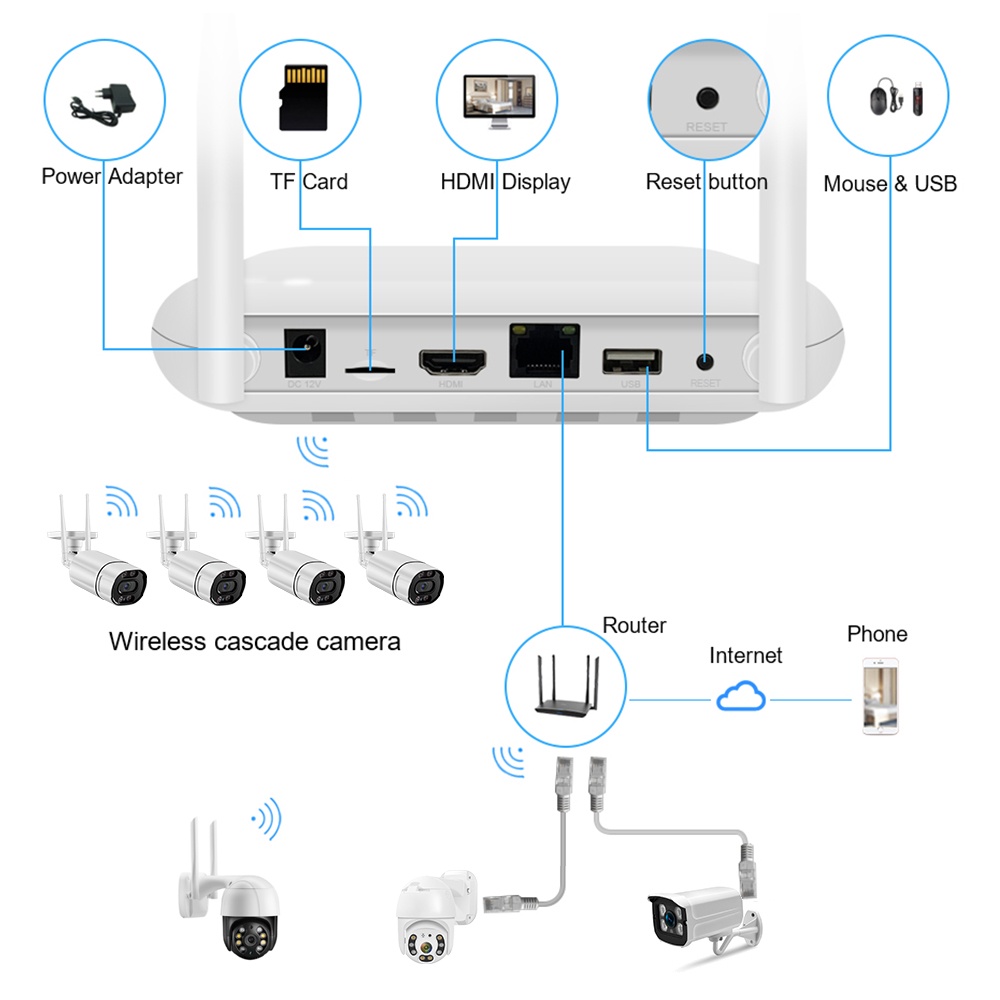 Hamrol H.265 ไร้สาย/แบบมีสาย NVR 10CH 5MP Face Detection RJ45 Motion Detection สี Night Vision XMEYE