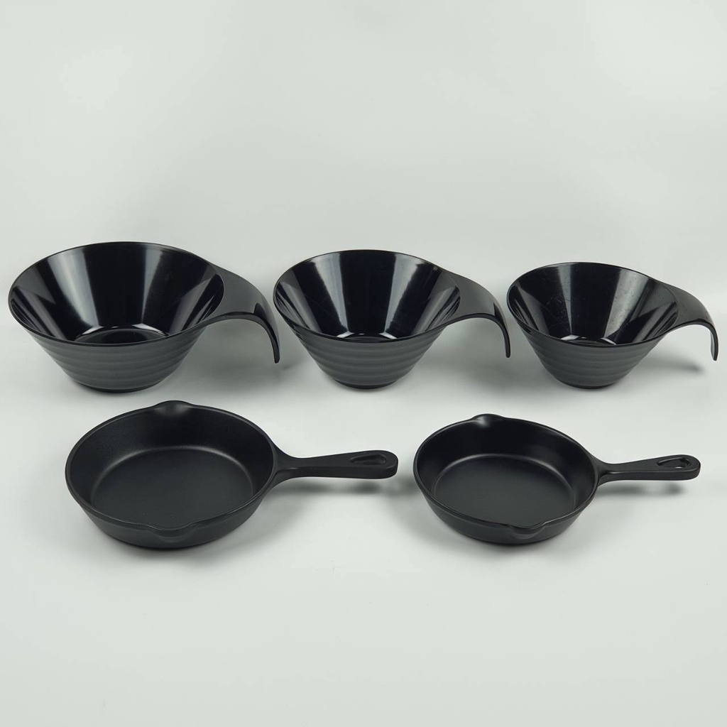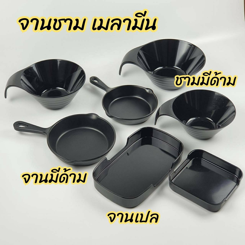 จานเมลามีน ชามเมลามีน ถาดสุกี้ จานมีด้าม ชามมีด้าม ชามแกง เมลามีนสีดำ มีให้เลือก 7 แบบ