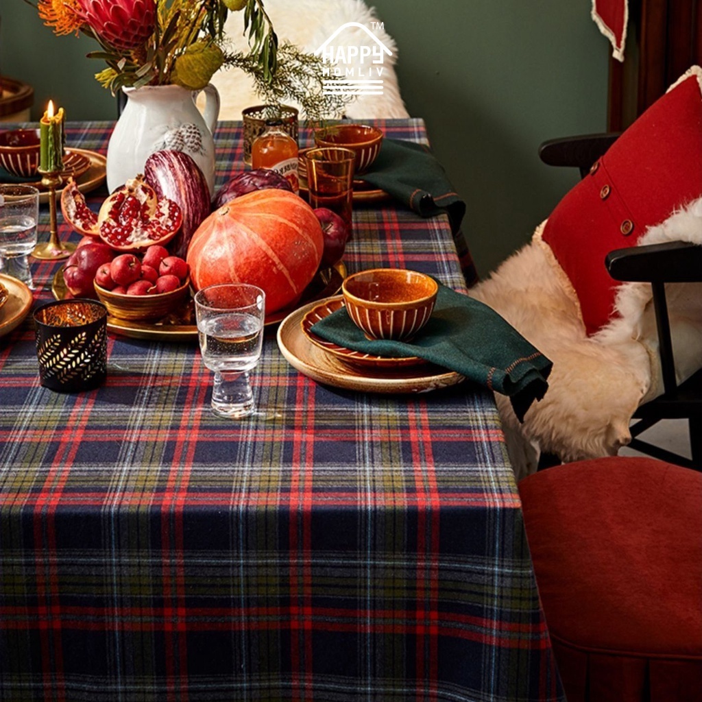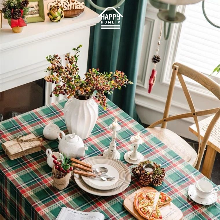 Happy HOMLIV ผ้าปูโต๊ะลายตาราง ผ้าปูโต๊ะสำหรับ 4 6 8 คน ผ้าปูโต๊ะสี่เหลี่ยมผืนผ้ากลม