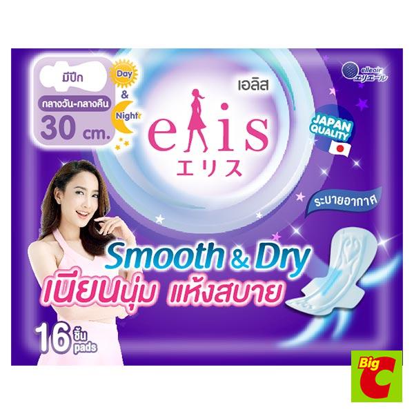 เอลิส ผ้าอนามัย แบบมีปีก รุ่นสมูธแอนด์ดราย ขนาด 30 ซม. 15 ชิ้น