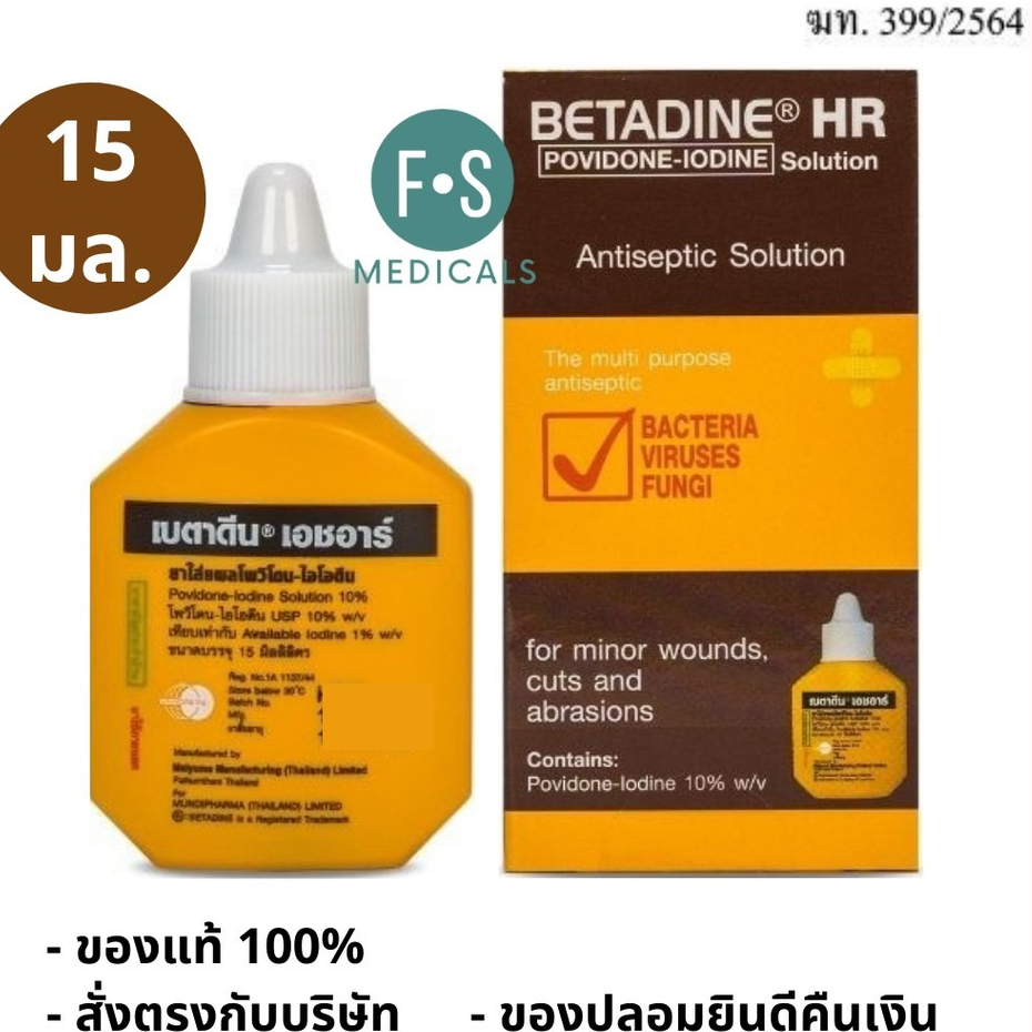 ล็อตใหม่!! BETADINE Solution HR 15 ml. เบตาดีน ยารักษาแผลสด 15 มล. ยาสามัญประจำบ้าน (1 ขวด) (P-5323)