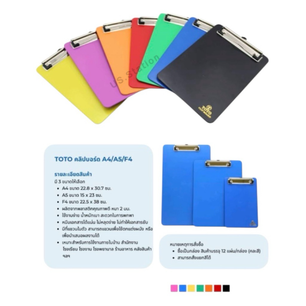 คลิปบอร์ด พลาสติก [เลือกสีได้] คลิบบอร์ด โตโต้ ขนาด A4/A5 แฟ้มหนีบ กระดานรองเขียน แฟ้มใส่เอกสาร แฟ้มพลาสติค แผ่นรองเขียน