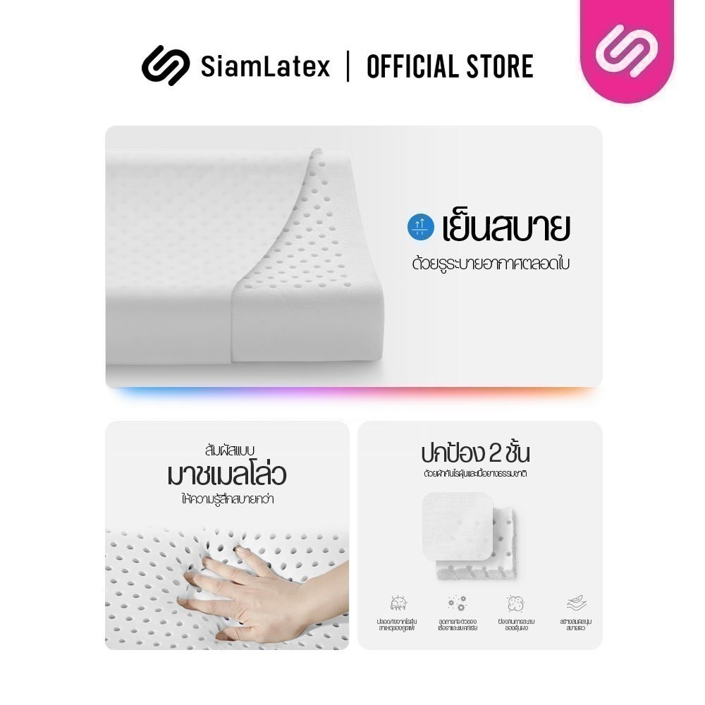 SiamLatex หมอนยางพารา รุ่น Zen หมอนเพื่อสุขภาพ แก้ปวดคอ ลดนอนกรน เกรดส่งออกญี่ปุ่น