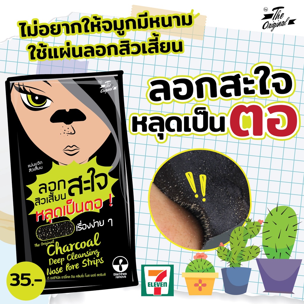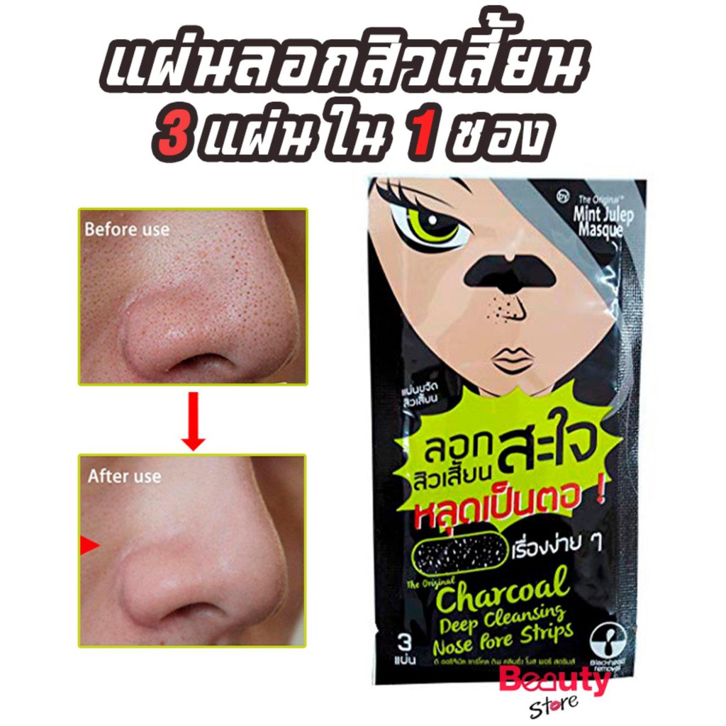(1 ซอง) แผ่น ขจัดสิวเสี้ยน The Original Charcoal Deep Cleansing Strips ดิ ออริจินอล ชาร์โคล แผ่นลอกสิวเสี้ยน