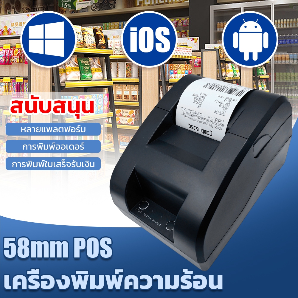 Tinne เครื่องพิมพ์ใบเสร็จ 58MM เครื่องปริ้นเดอร์ Shopee food พิมพ์บิล สลิปรับเงิน รุปภาพ บาร์โค้ท