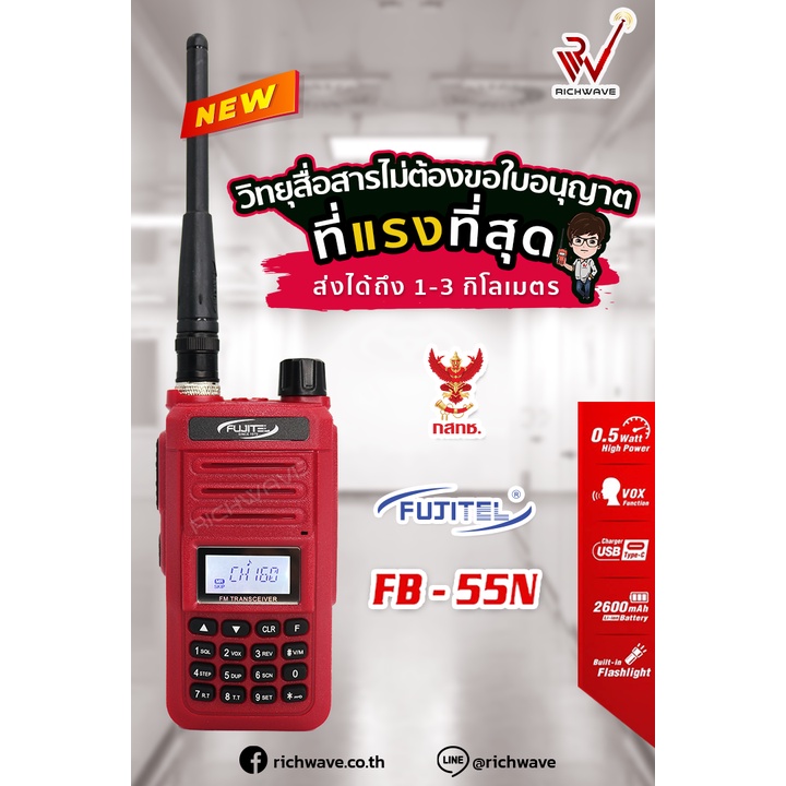 FUJITEL FB-55N (แพ็คคู่) วิทยุสื่อสาร ถูกกฏหมาย ไม่ต้องขอใบอนุญาตได้ ที่แรงที่สุด อุปกรณ์ครบชุด วอแดง วอ 0.5w Richwave