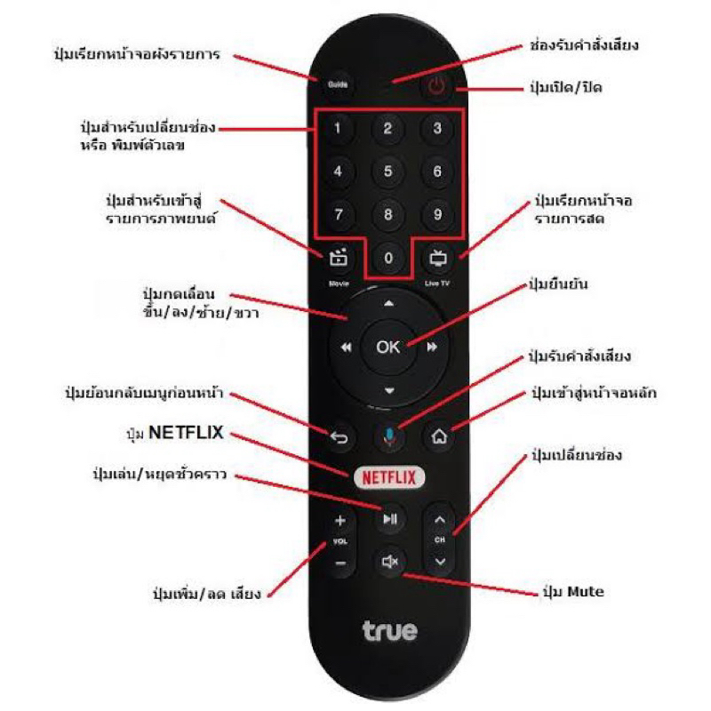 รีโมท กล่องทรูไอดีทีวี ของแท้ ใช้กับTrueID TV มีปุ่ม Netflix Google Assistant คำสั่งเสียง แถมถ่านฟรี