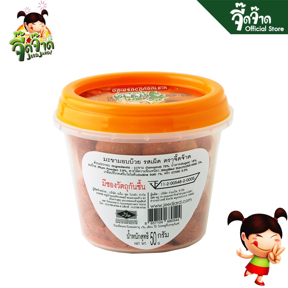 จี๊ดจ๊าด มะขามอบรสบ๊วยเผ็ด ขนาด 50 กรัม