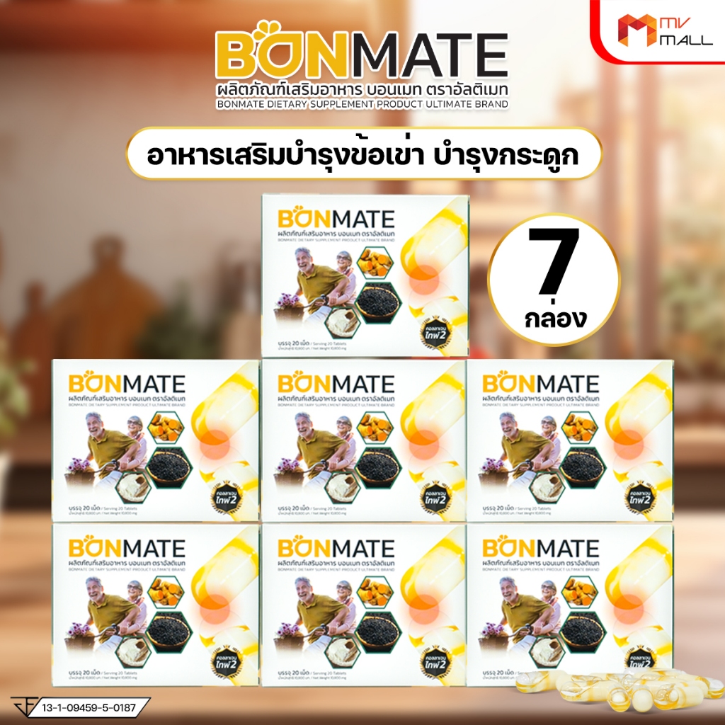 [7 กล่อง] Ultimate Bonmate อัลติเมท บอนเมท อาหารเสริมบำรุงกระดูก ข้อ เข่า กระดูกพรุน ขนาด 20 แคปซูล